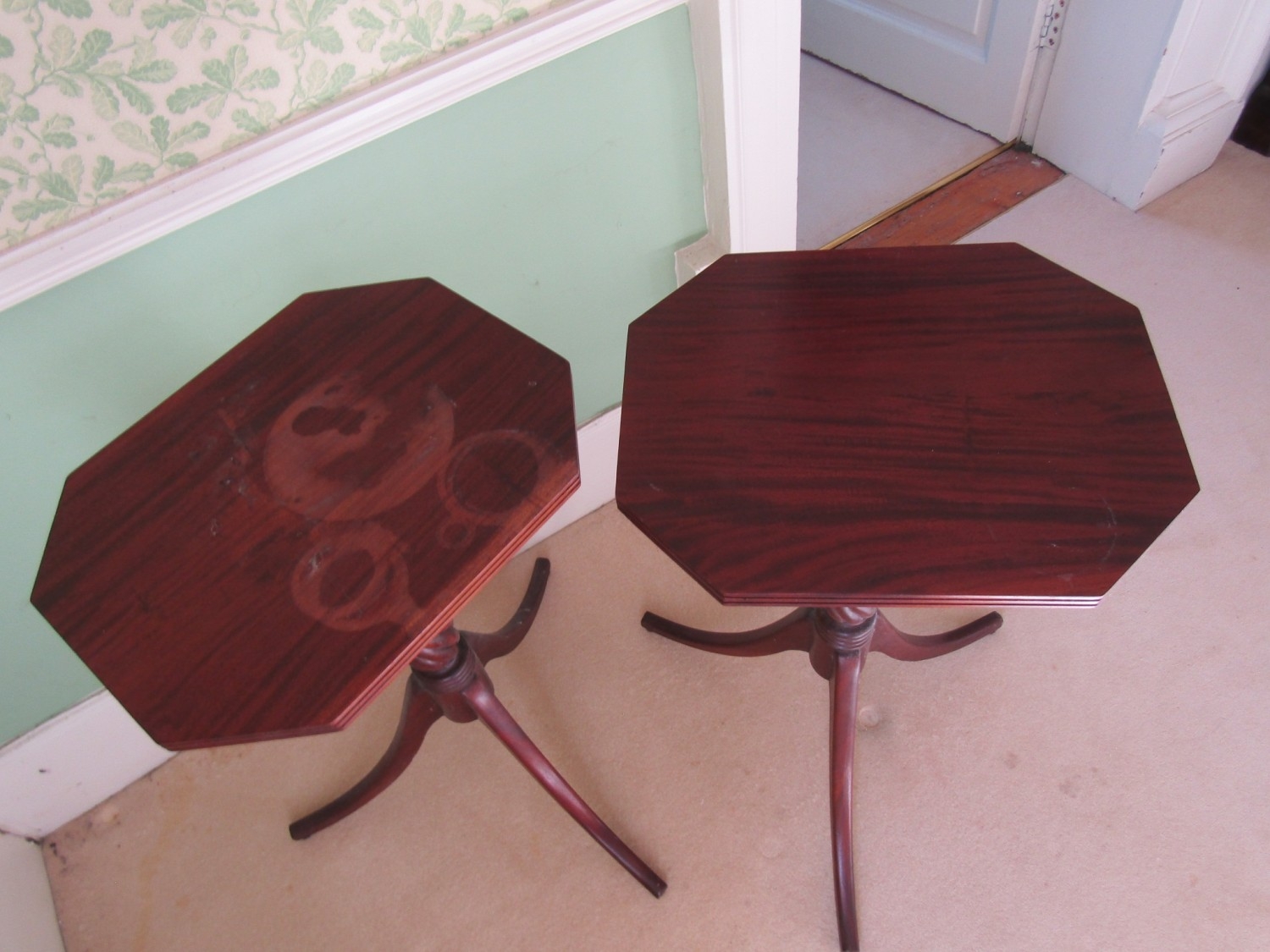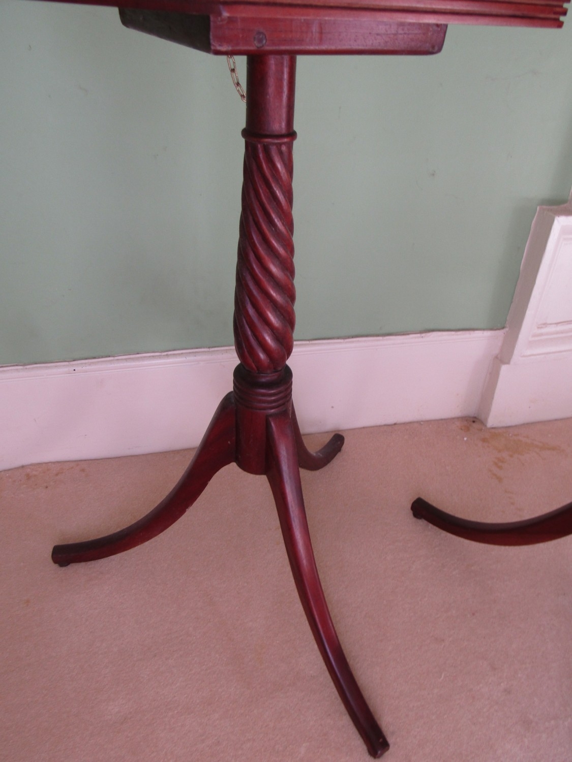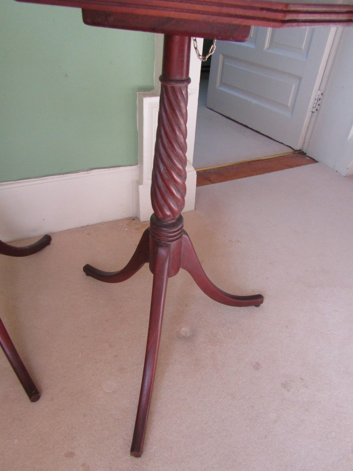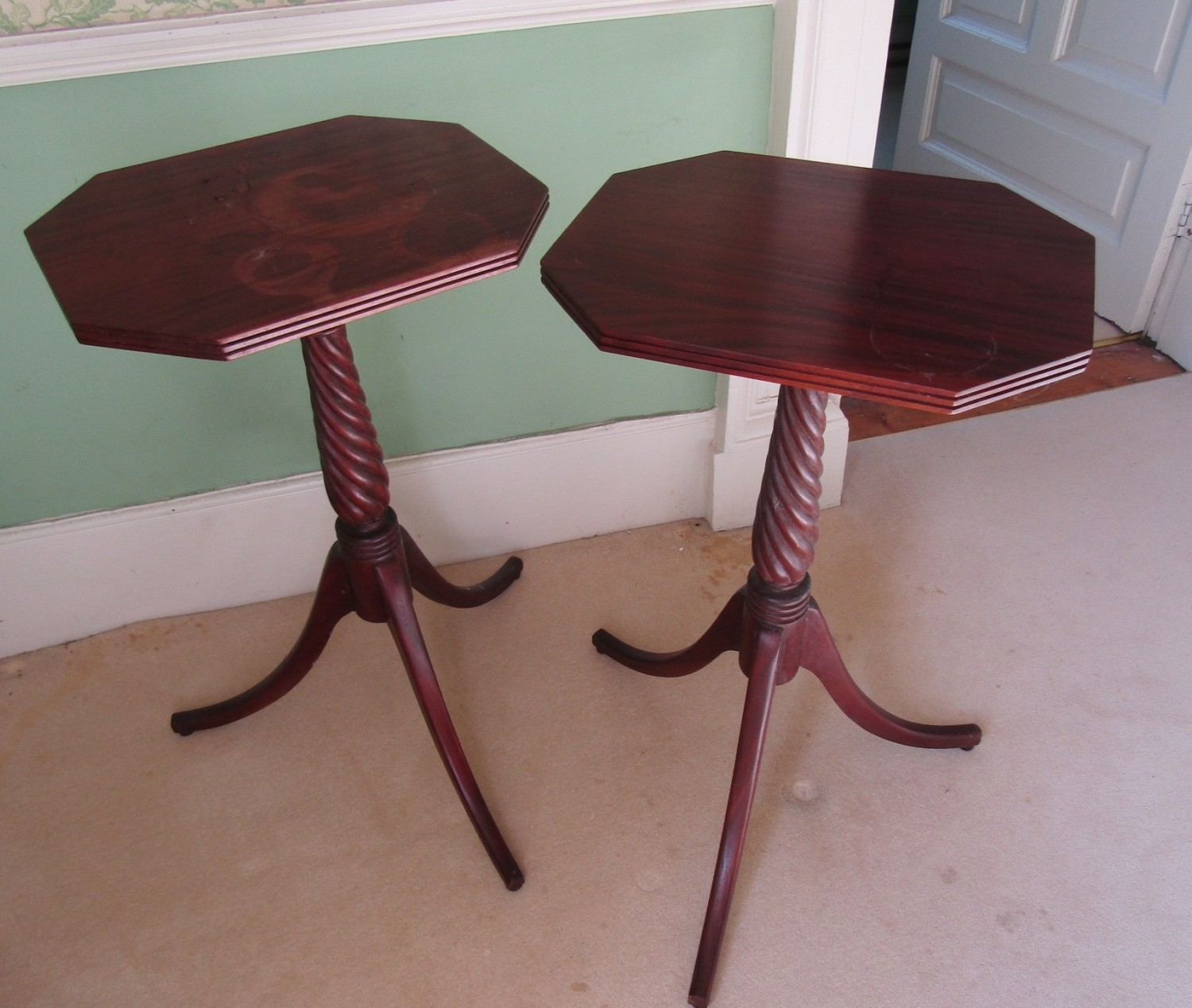 Pair of Occasional Tables Nelson Column Supports Canted Corner Tops Each Approximately 16 Inches Wide x 31 Inches High