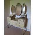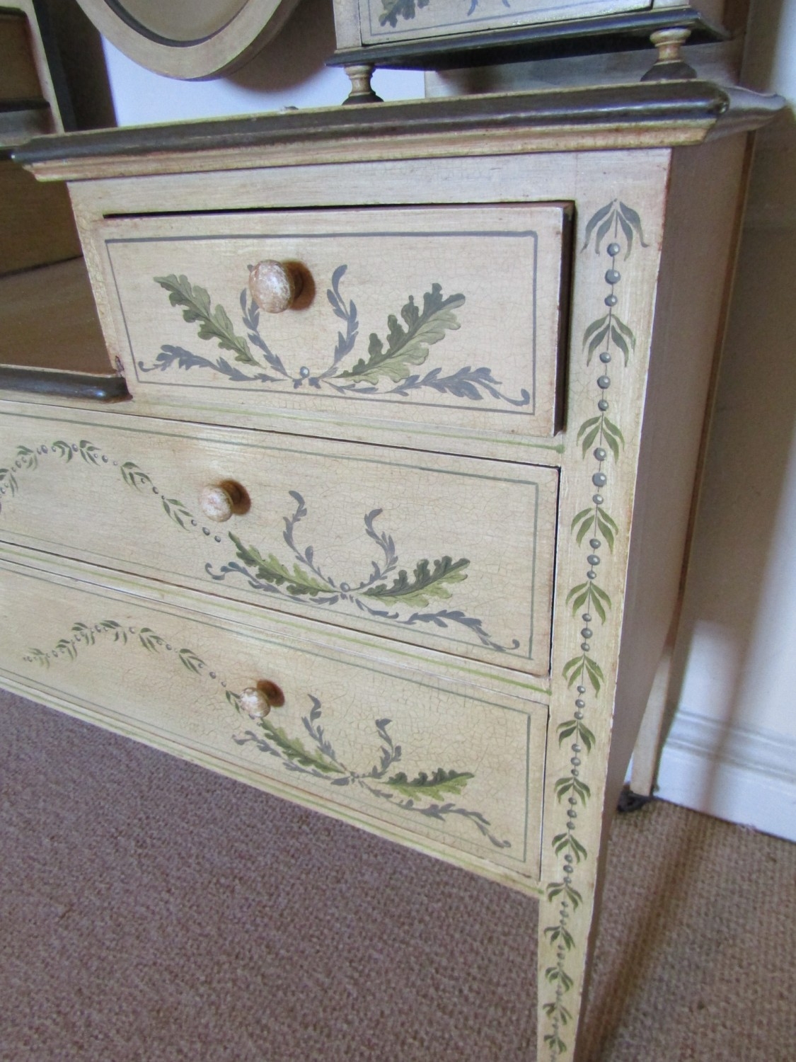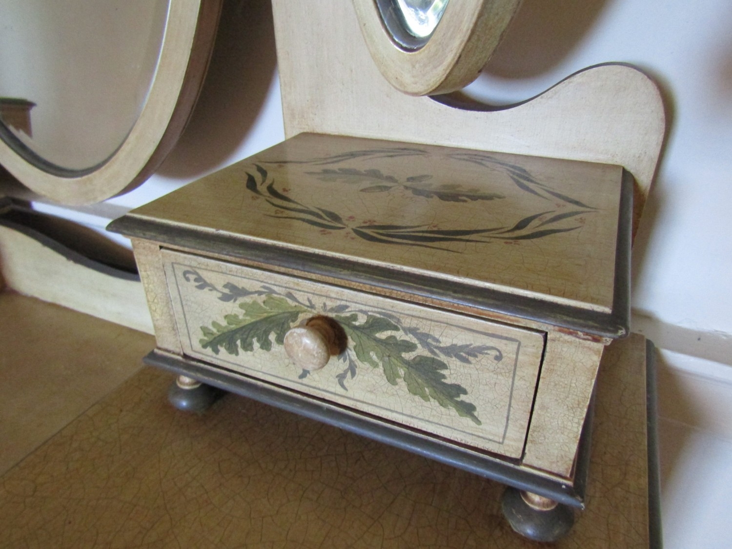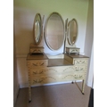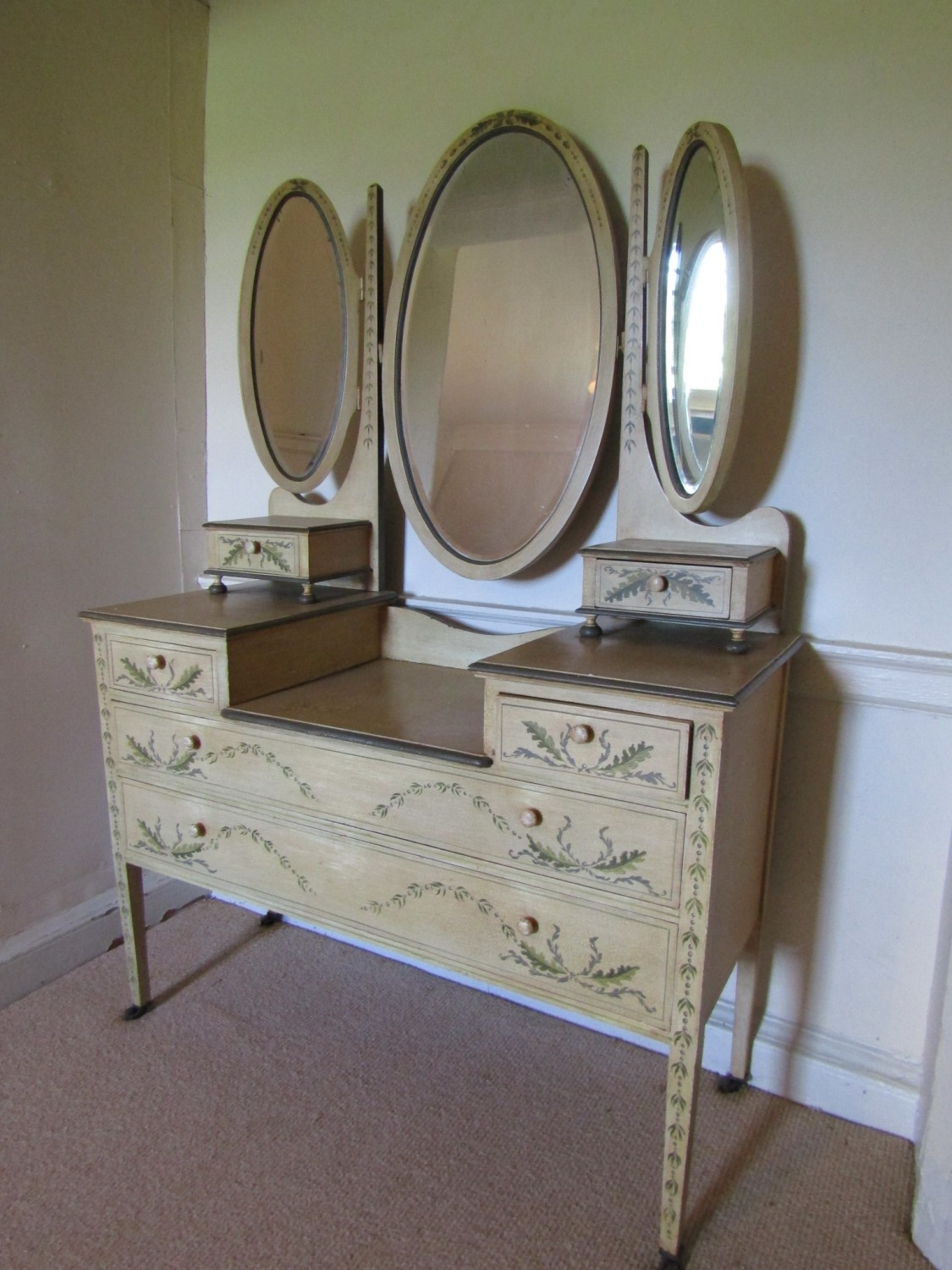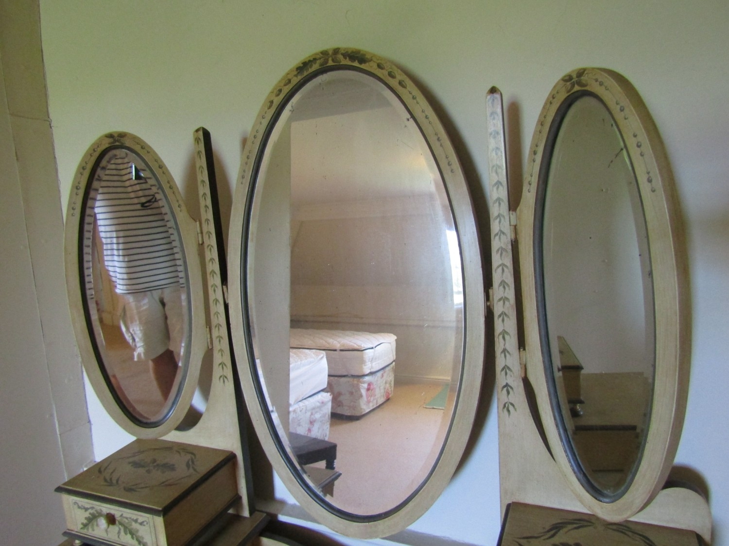 Tri-mirror Set Dressing Table Cream Painted with Floral and Leaf Motifs Attractively Detailed Approximately 48 Inches Wide