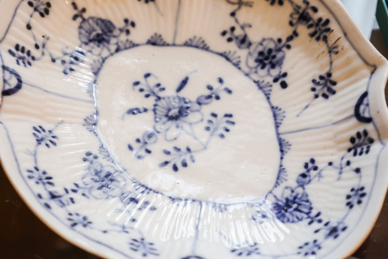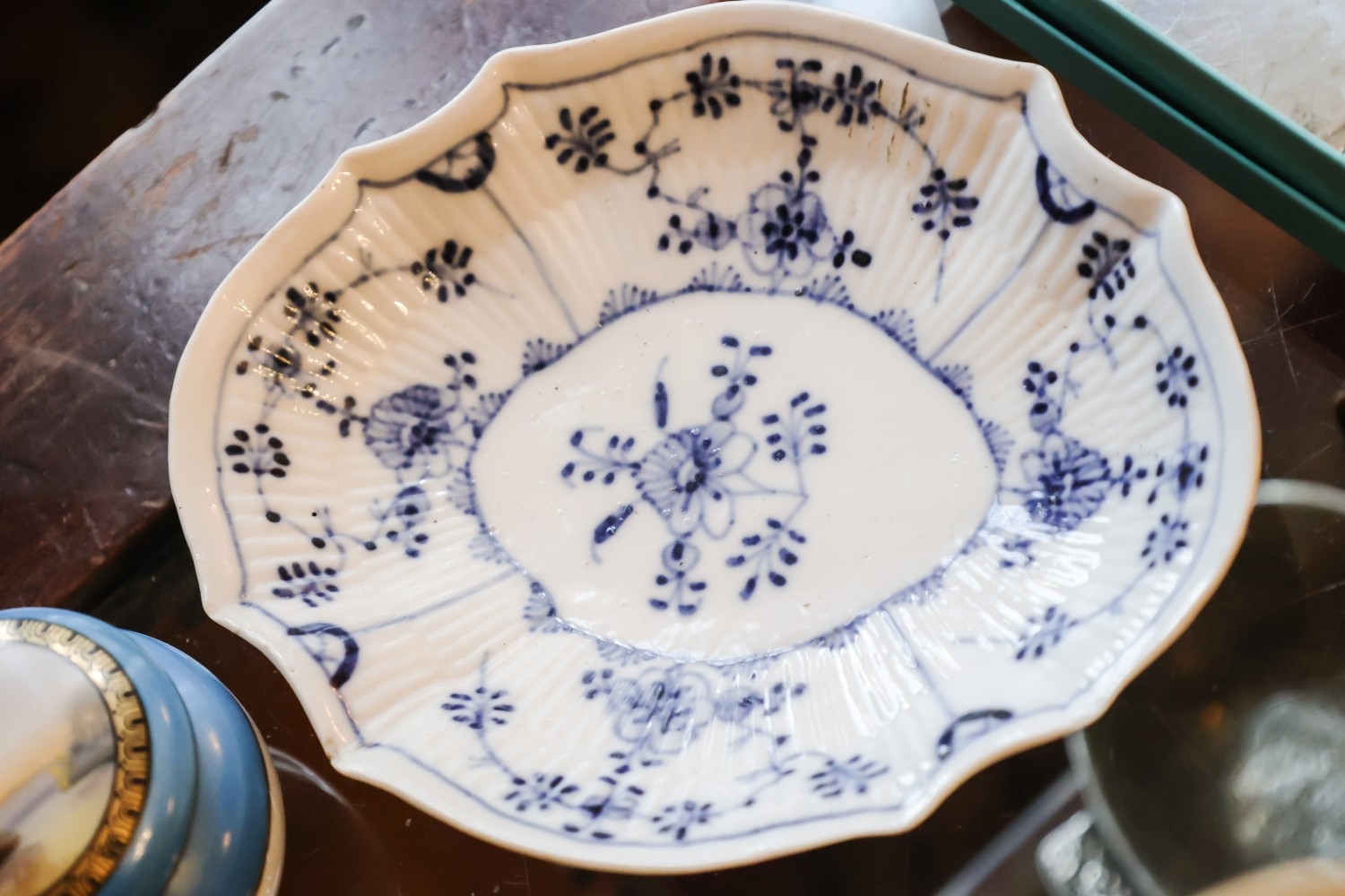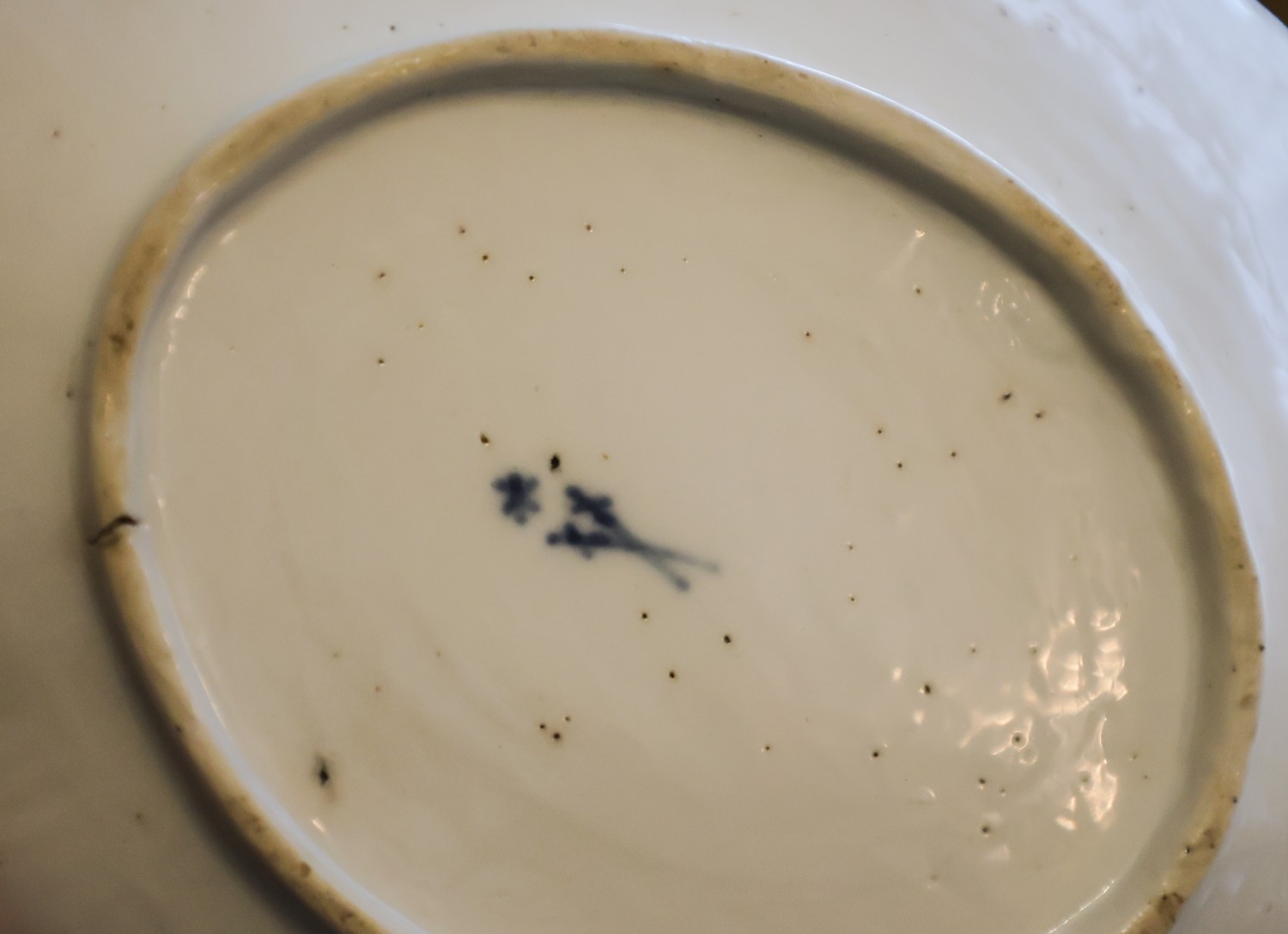 Old Meissen Dish Blue and White Pattern Oval Shaped Form Crossed Swords to Base Approximately 6cm Wide