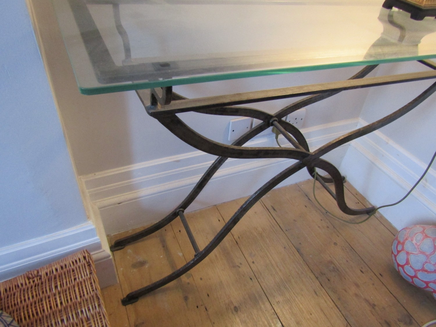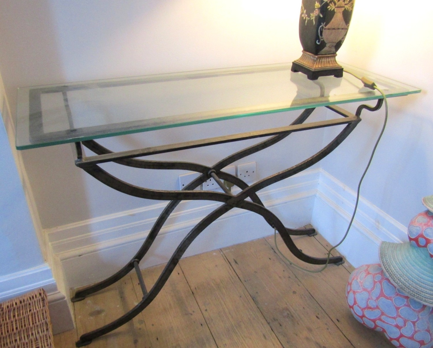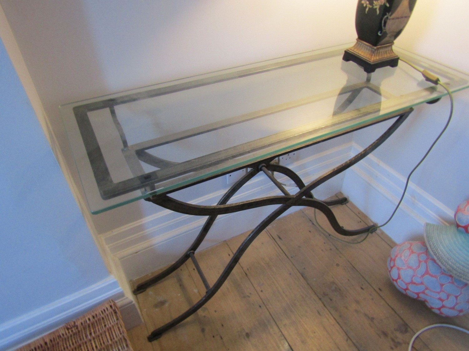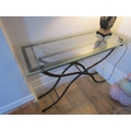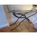 Designer Plate Glass Top Wrought Metal Console Table Approximately 50 Inches Wide x 34 Inches High