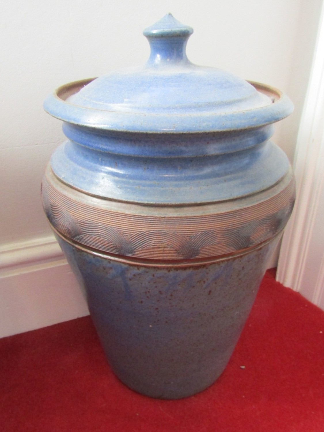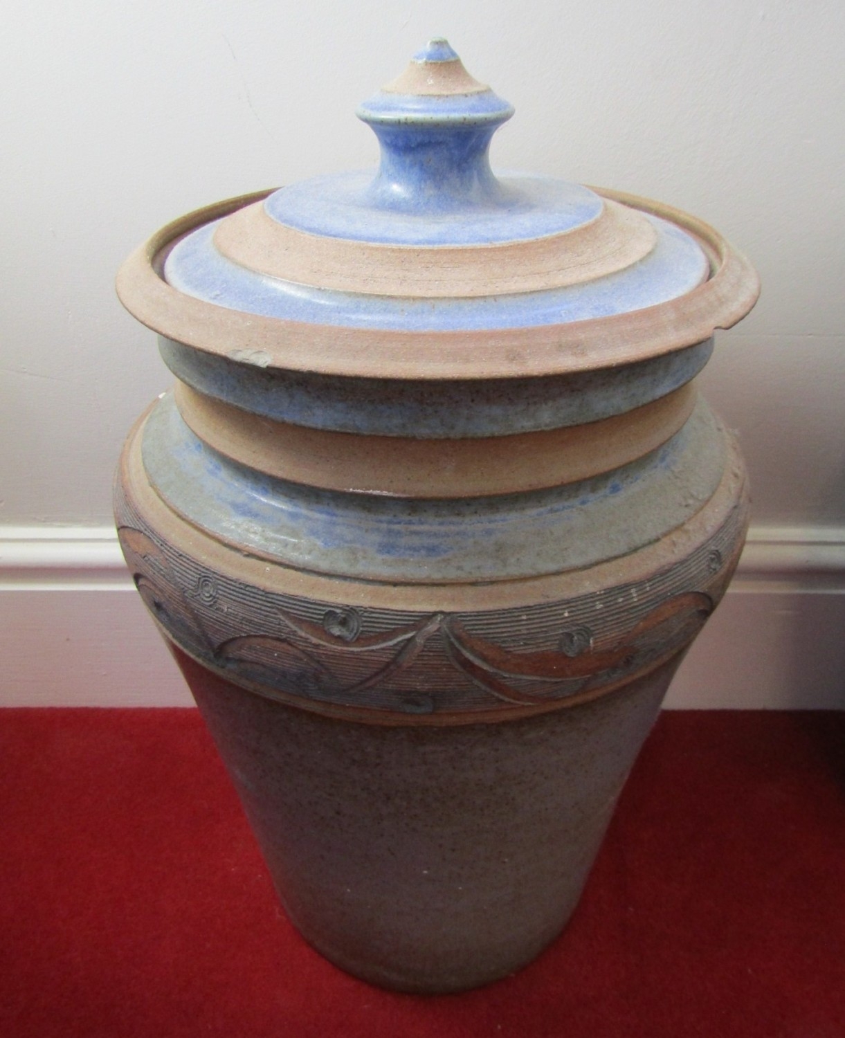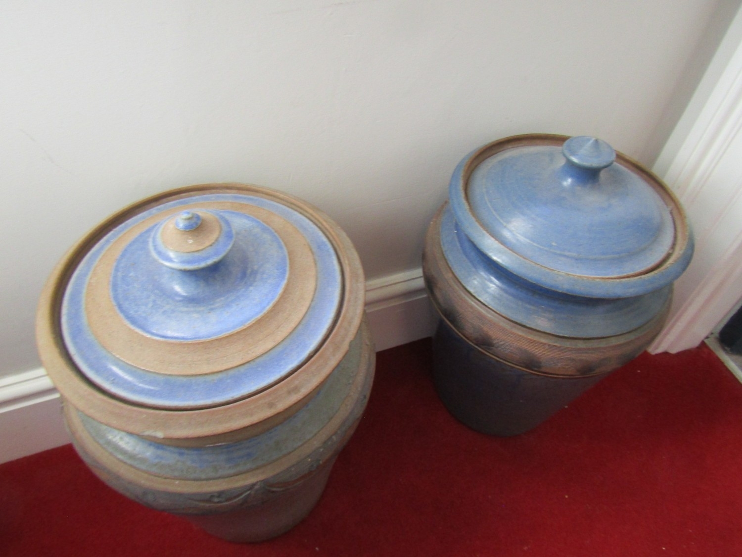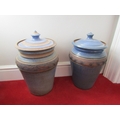 Two Irish Fired Earthenware Urns with Original Covers Tallest Approximately 25 inches High