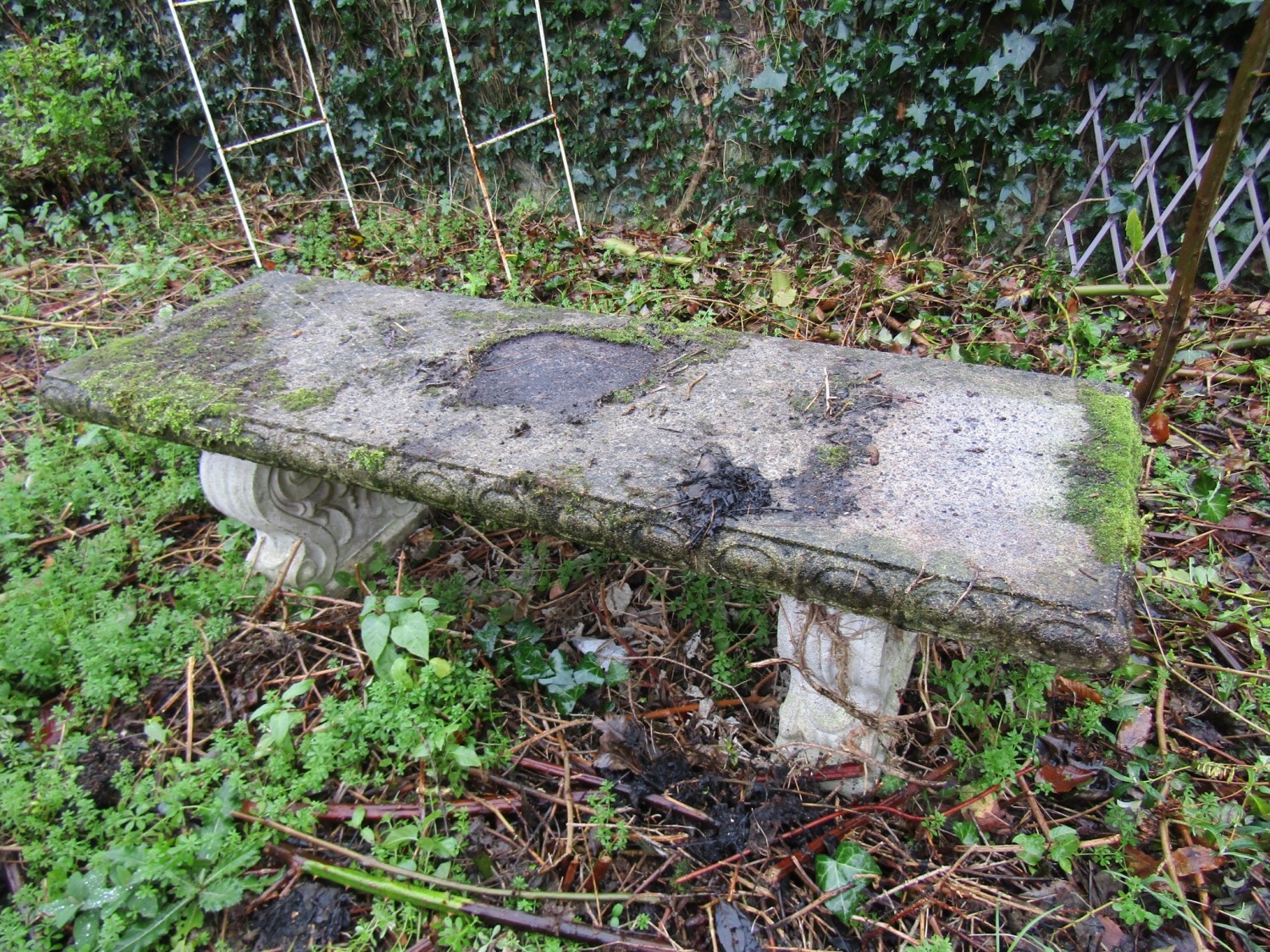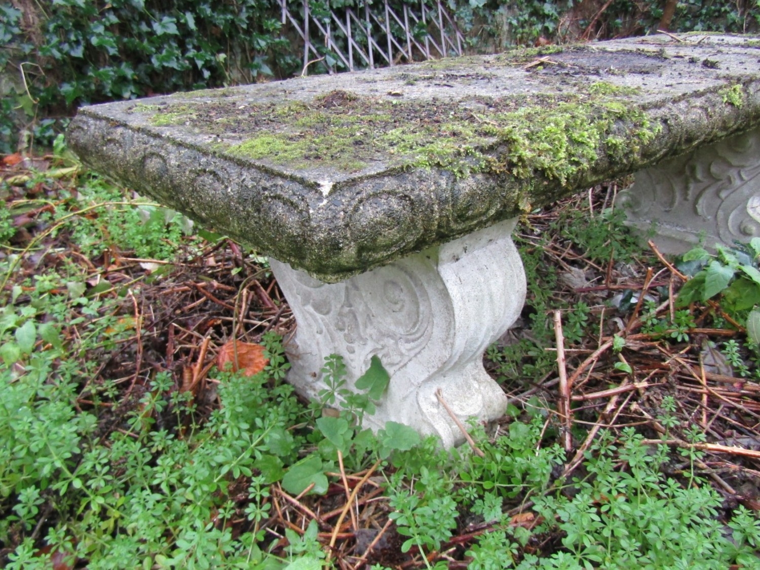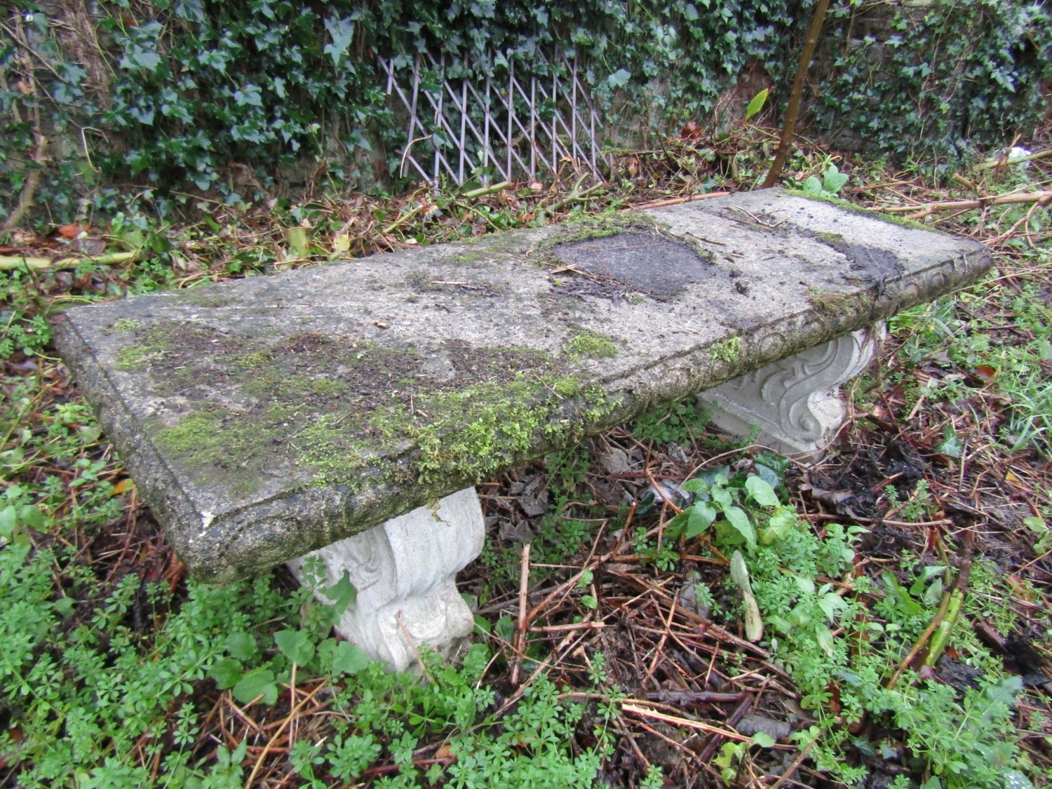 Composite Stone Garden Bench Scrolled Plinth End Rests Approximately 4ft 4 Inches Wide