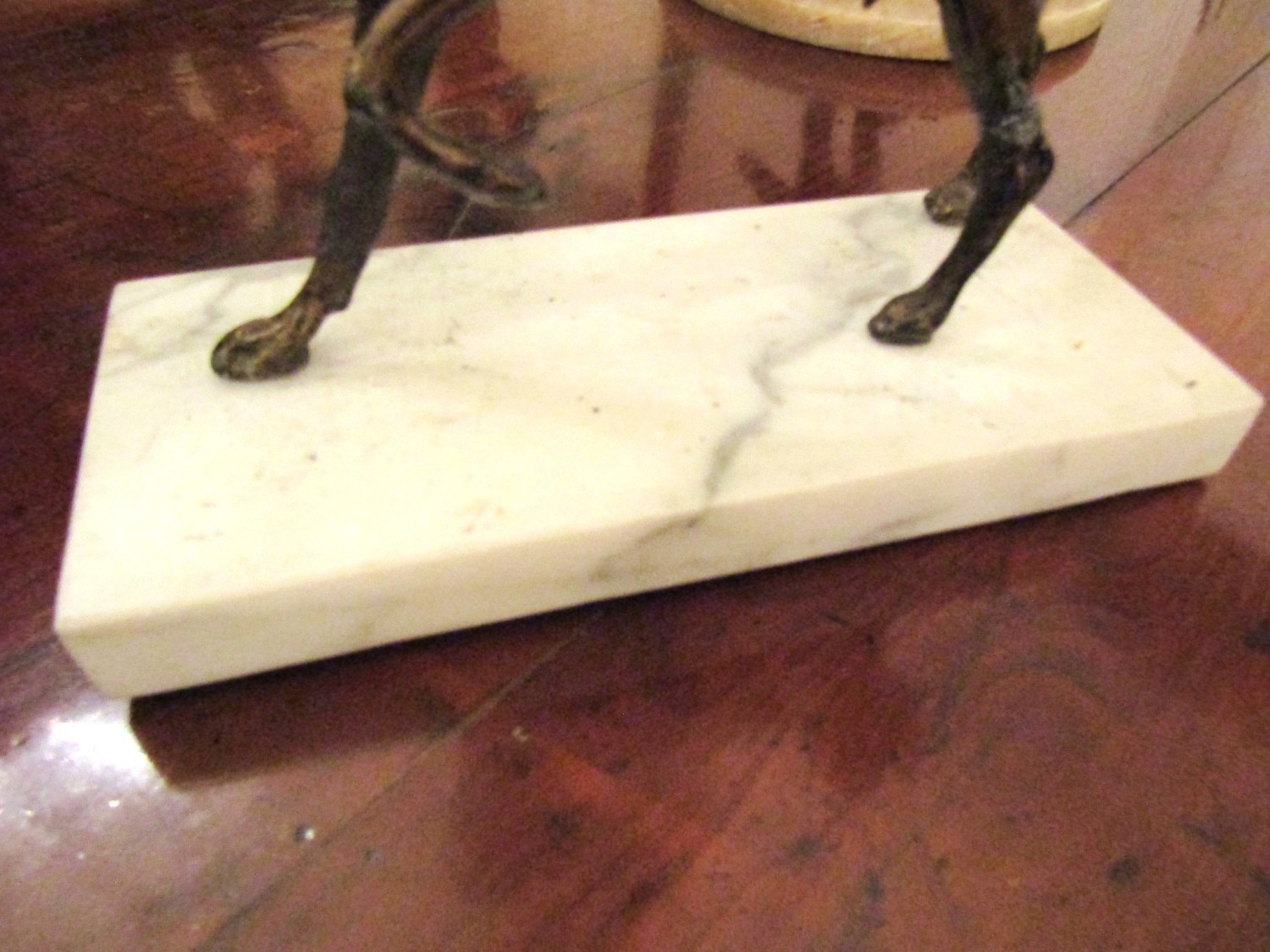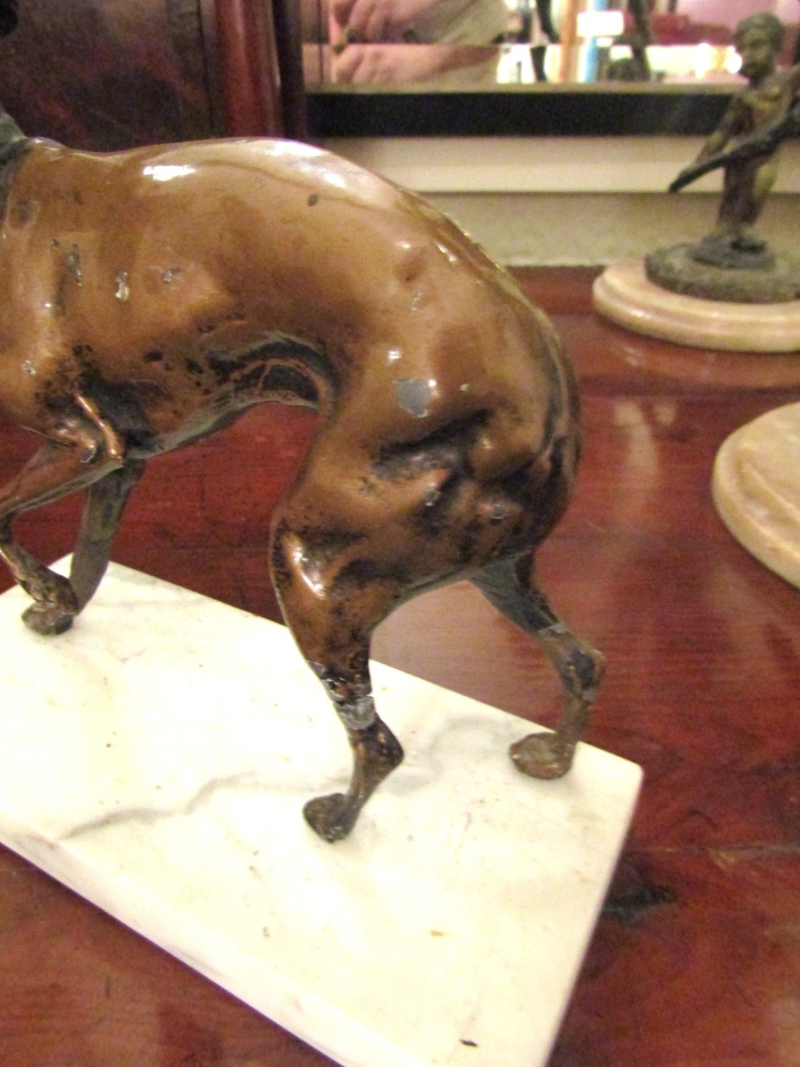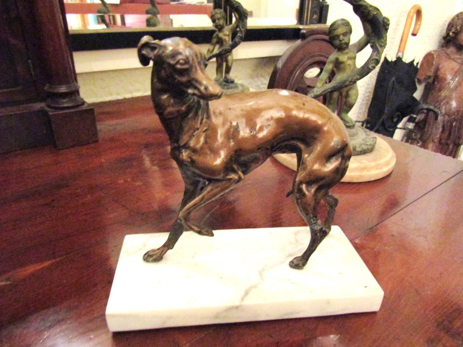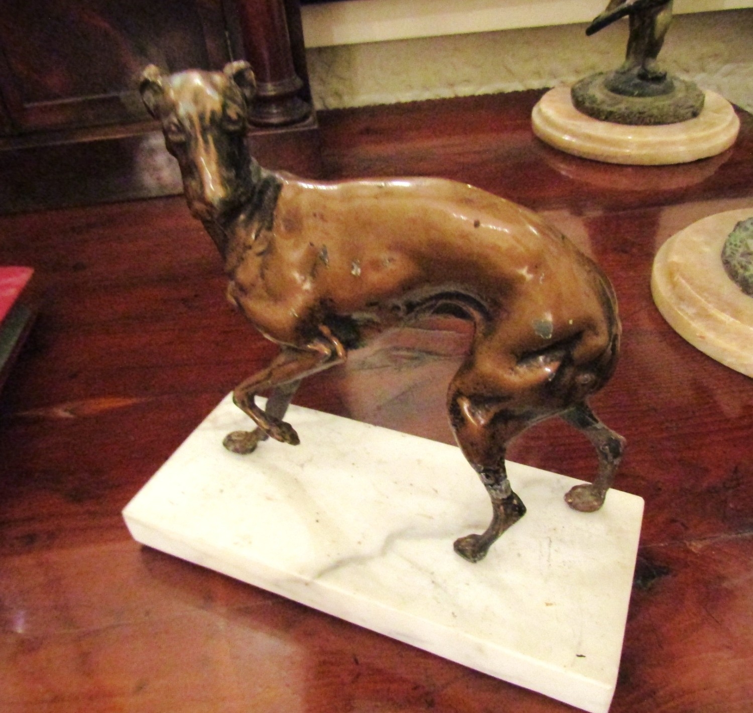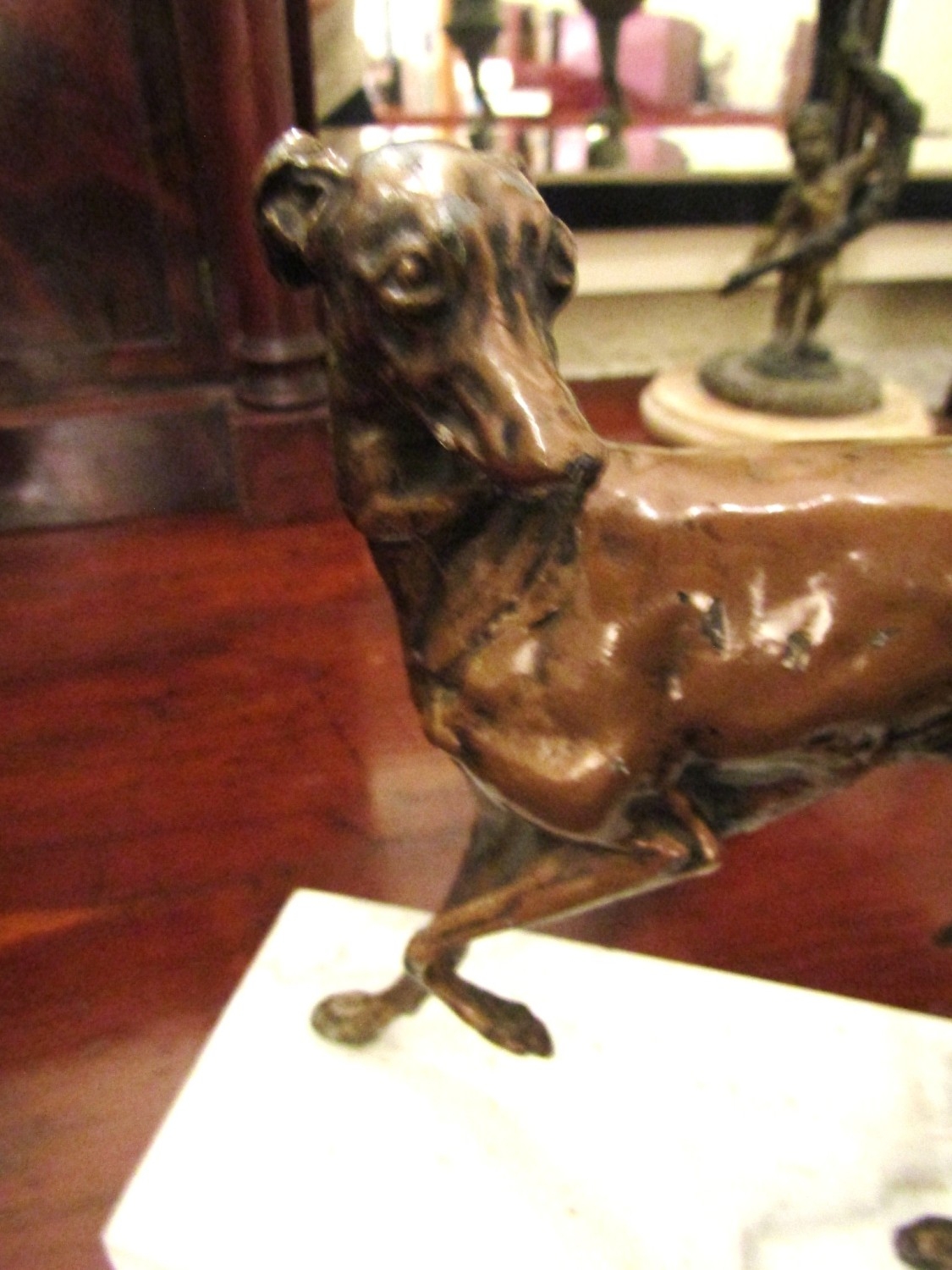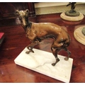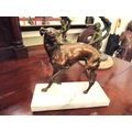 Antique Bronze Sculpture Whippet Mounted on Rectangular Form Marble Base Approximately 7 Inches Wide
