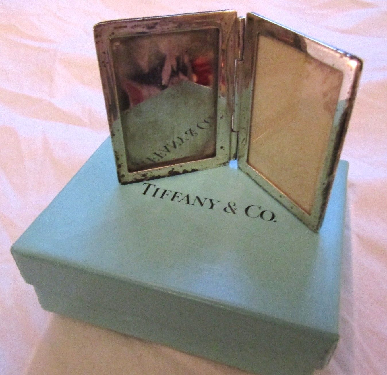 Tiffany Silver Double Photograph Holder Hinge Form Approximately 6cm High Tiffany Box Present