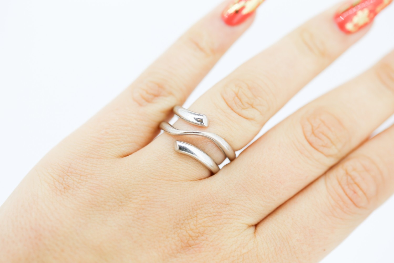 Unusual Form 18 Carat White Gold Wraparound Ring Size P and a Half