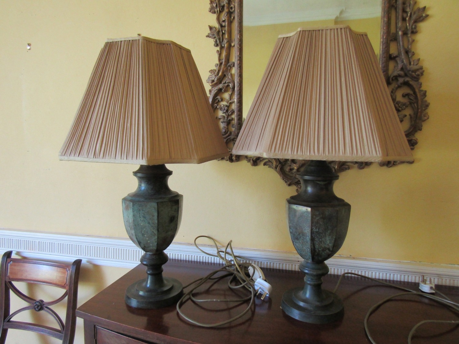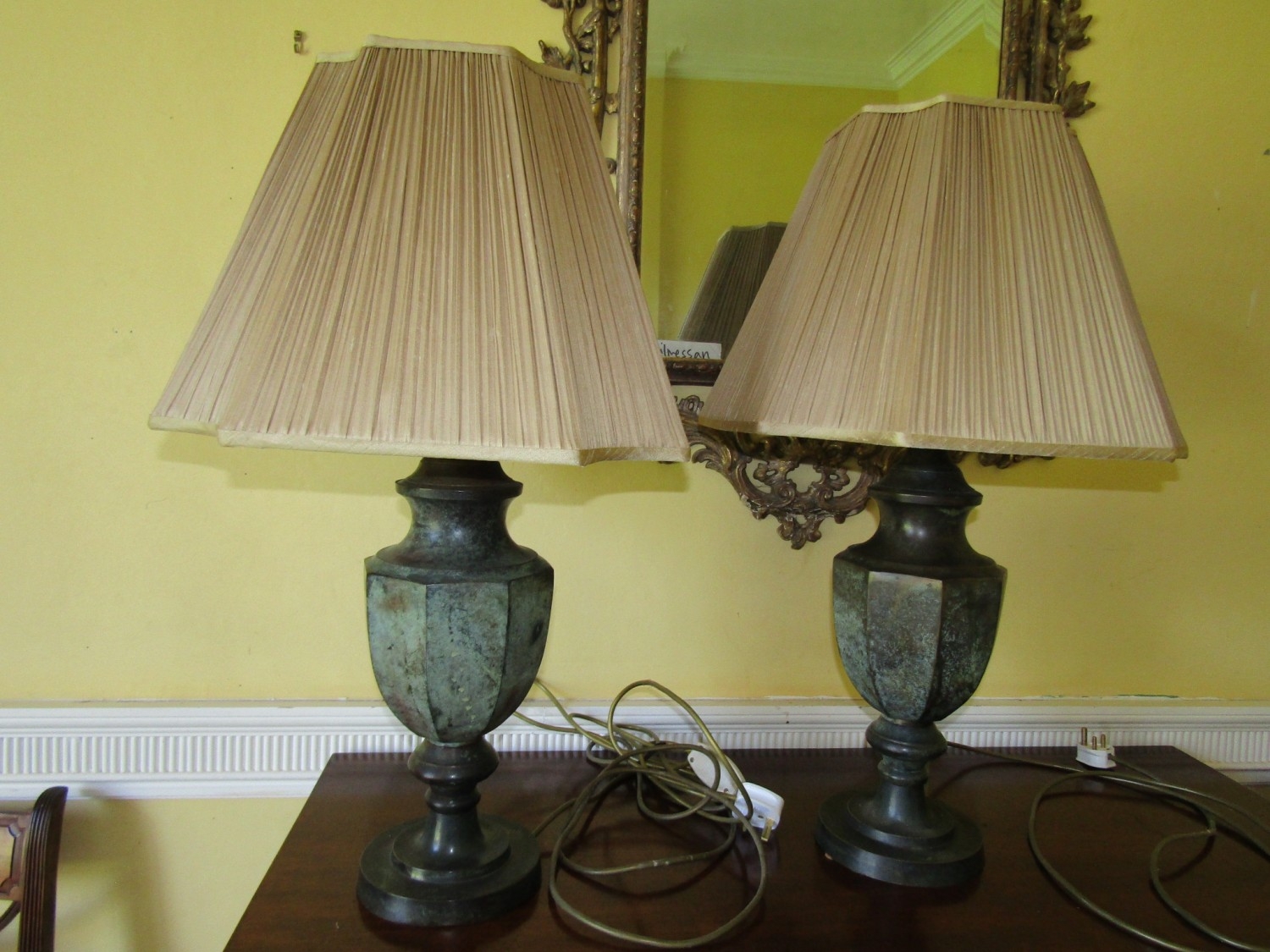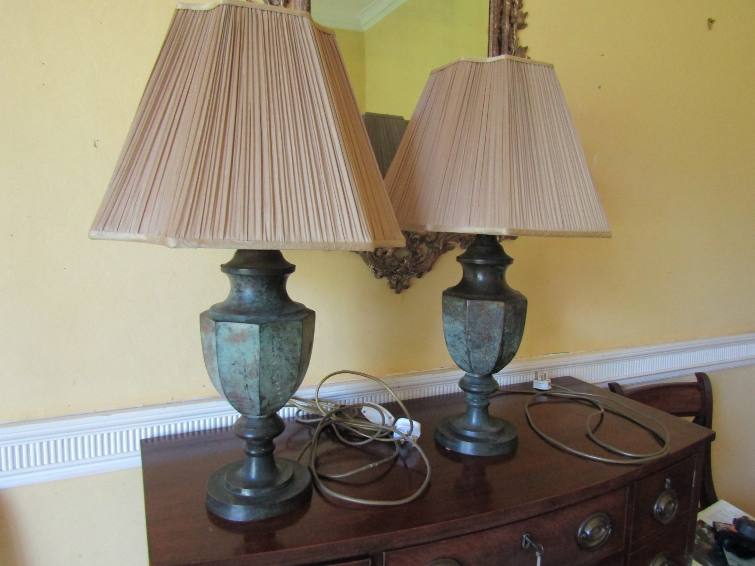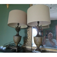 Pair of Modern Designer Metal Table Lamps Bronzed Design Electrified Working Order Each Approximately 30 Inches High