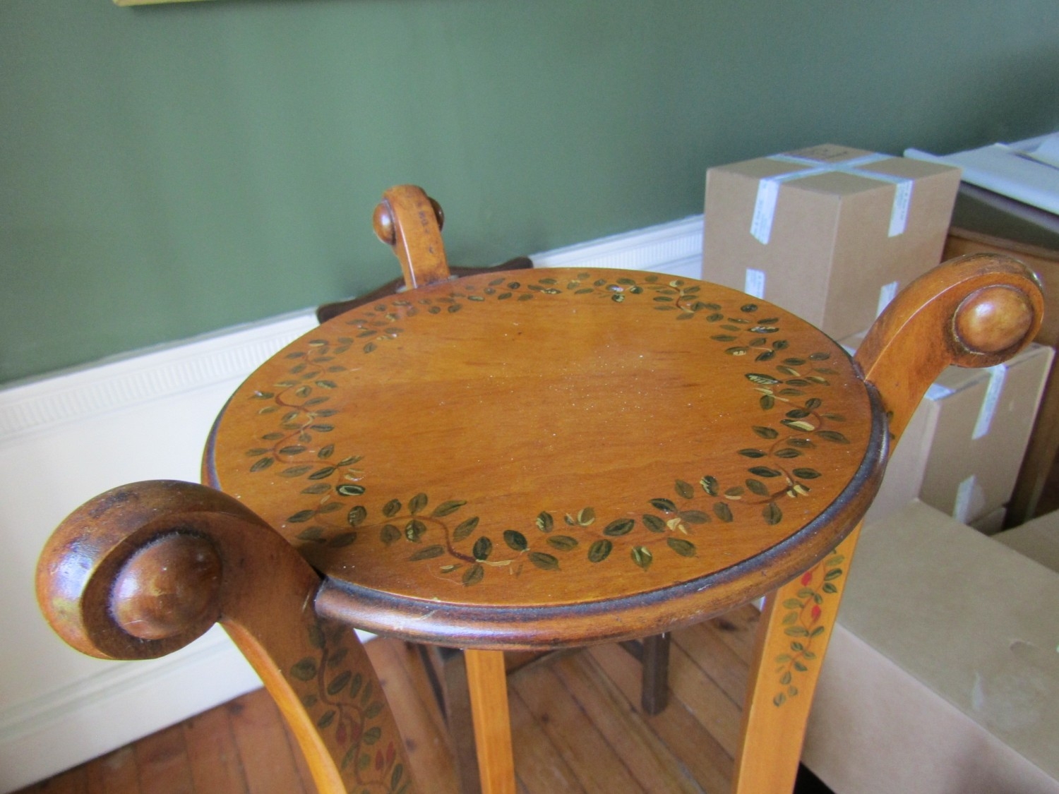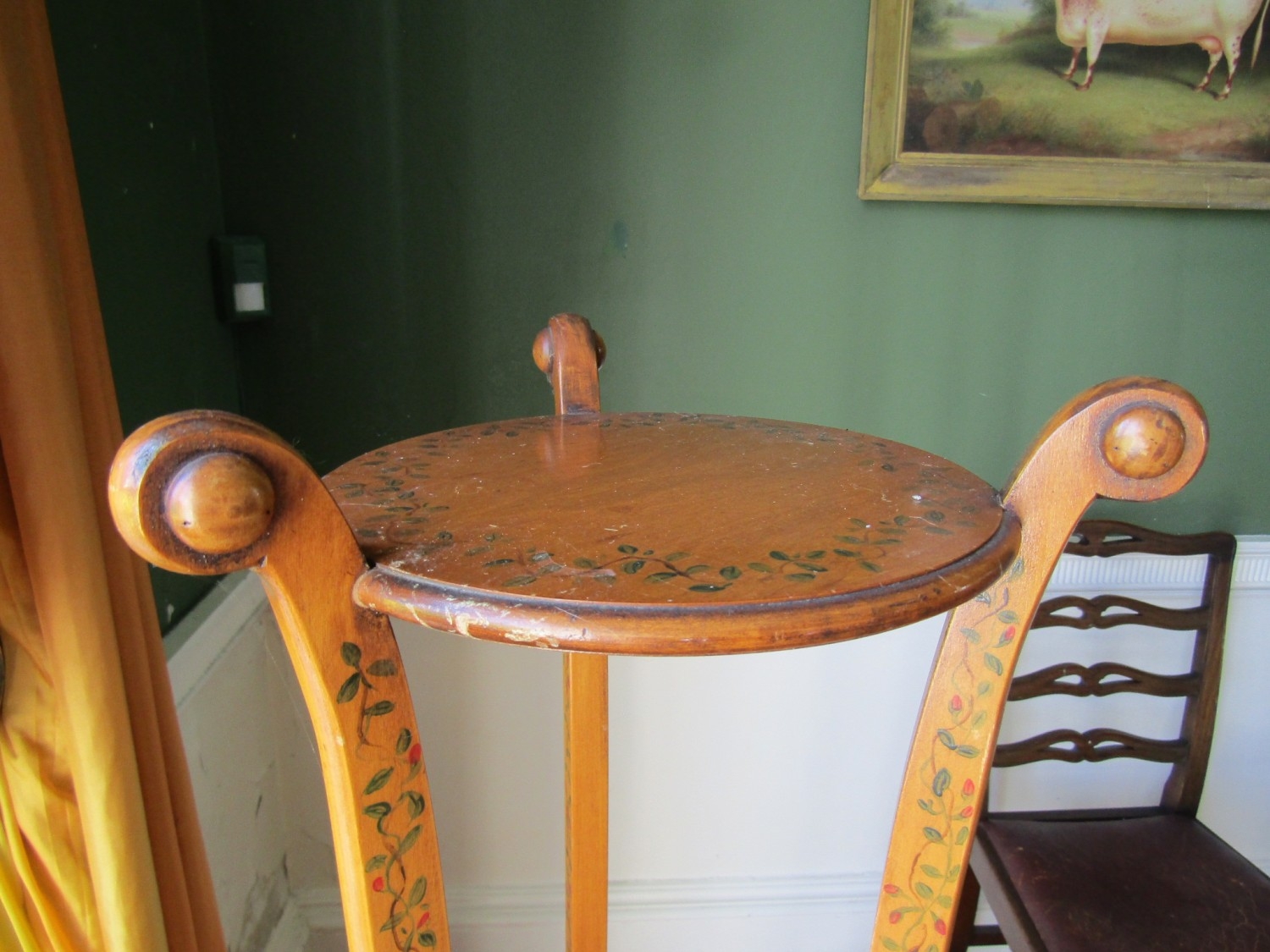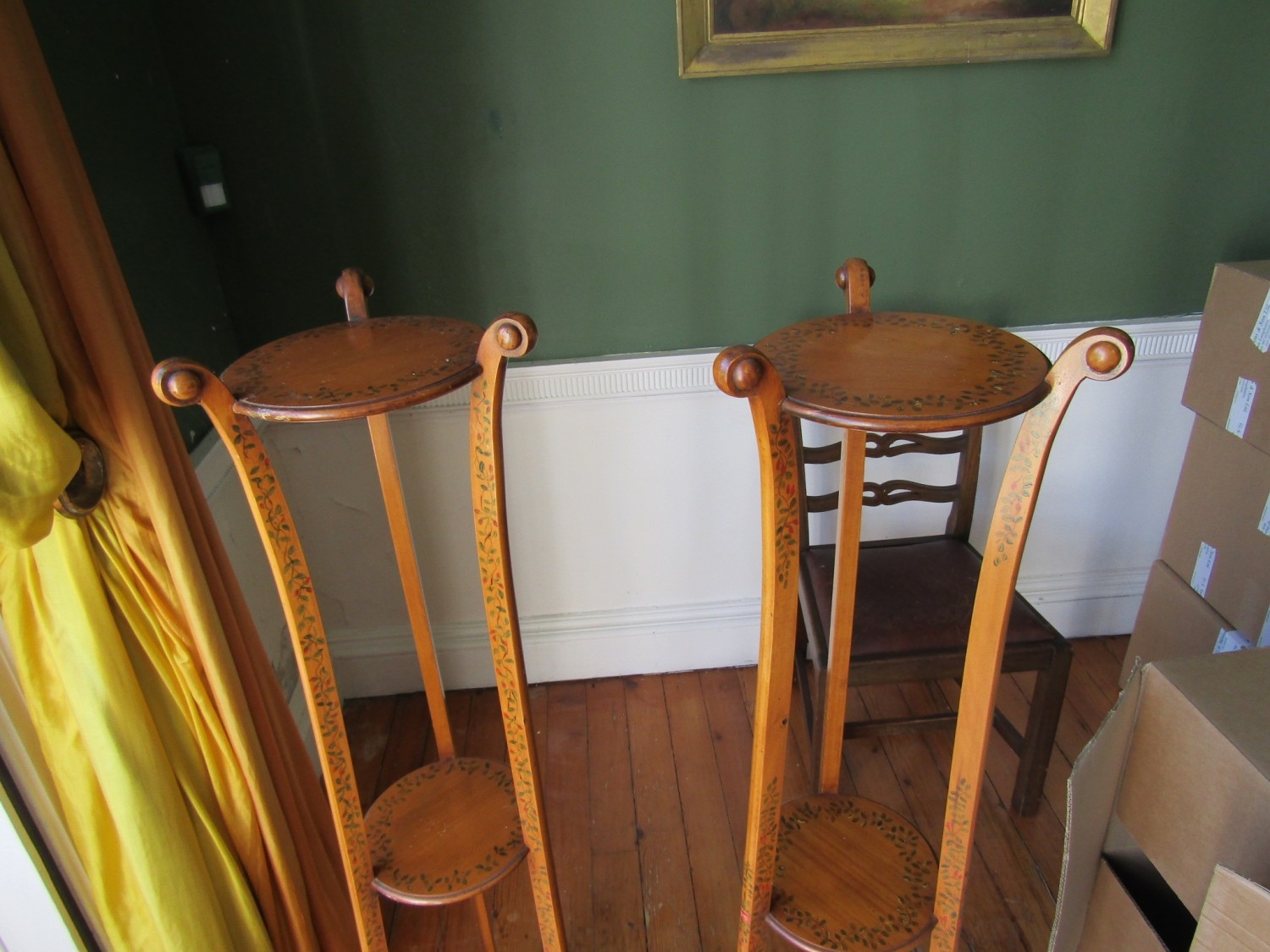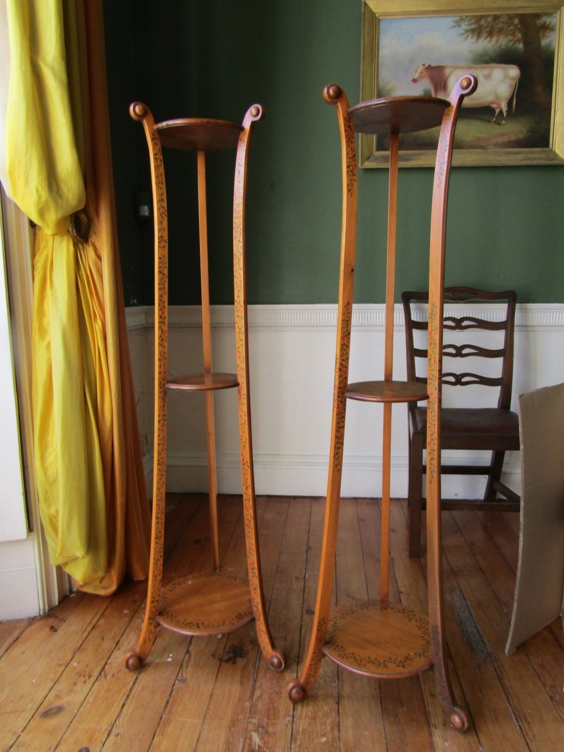 Pair of Antique Satinwood Stands Attractively Detailed and Painted Shaped Form Each Approximately 5ft 8 Inches High