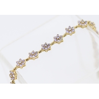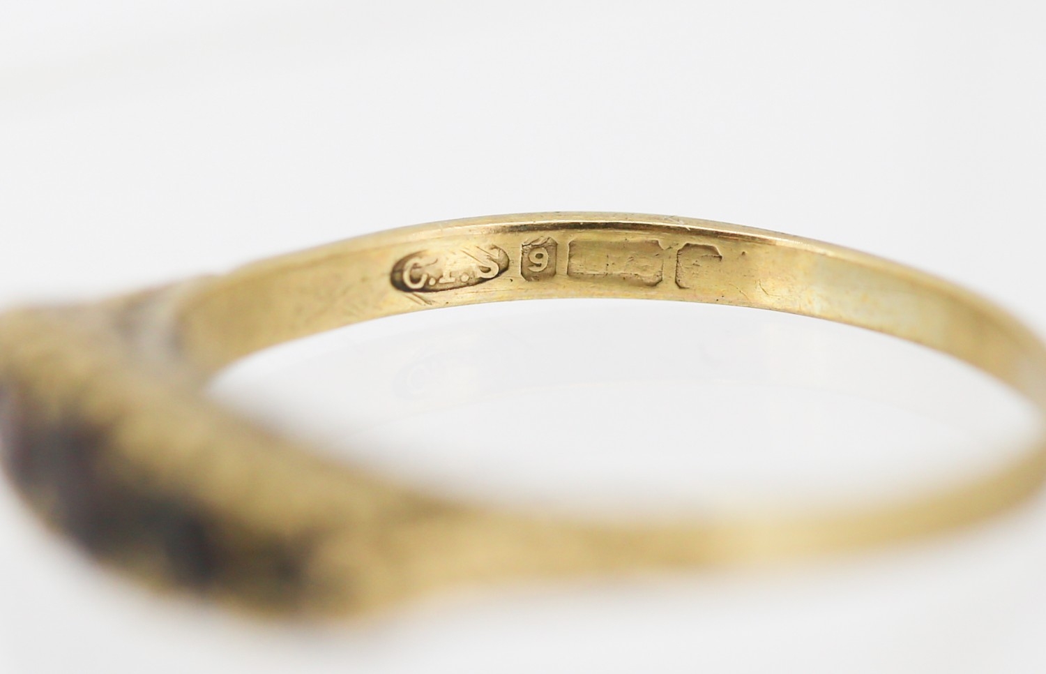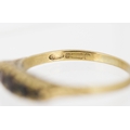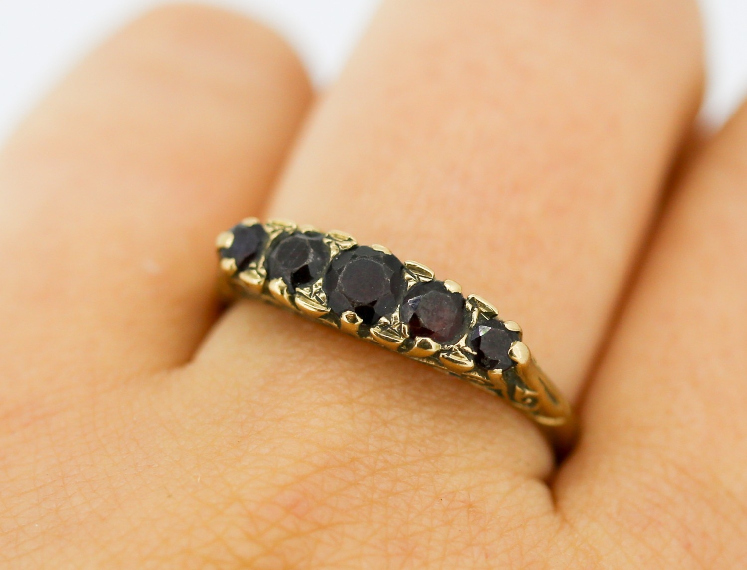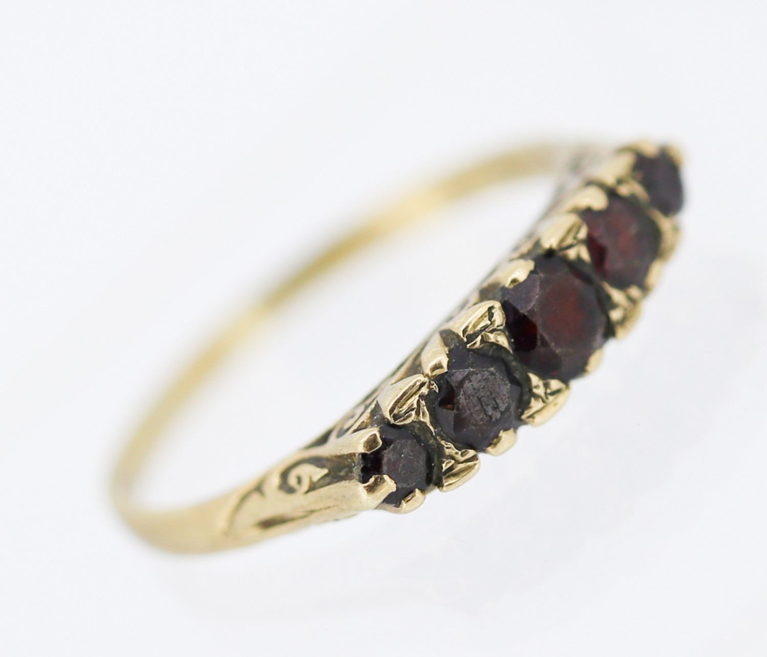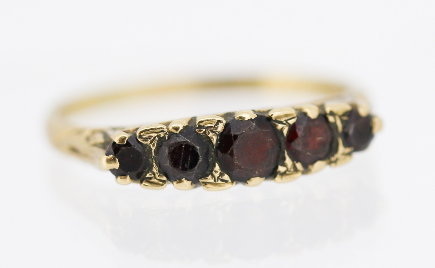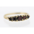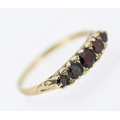 Garnet Set Five Stone Graduated Form Ring Mounted in 9 Carat Yellow Gold Ring Size V