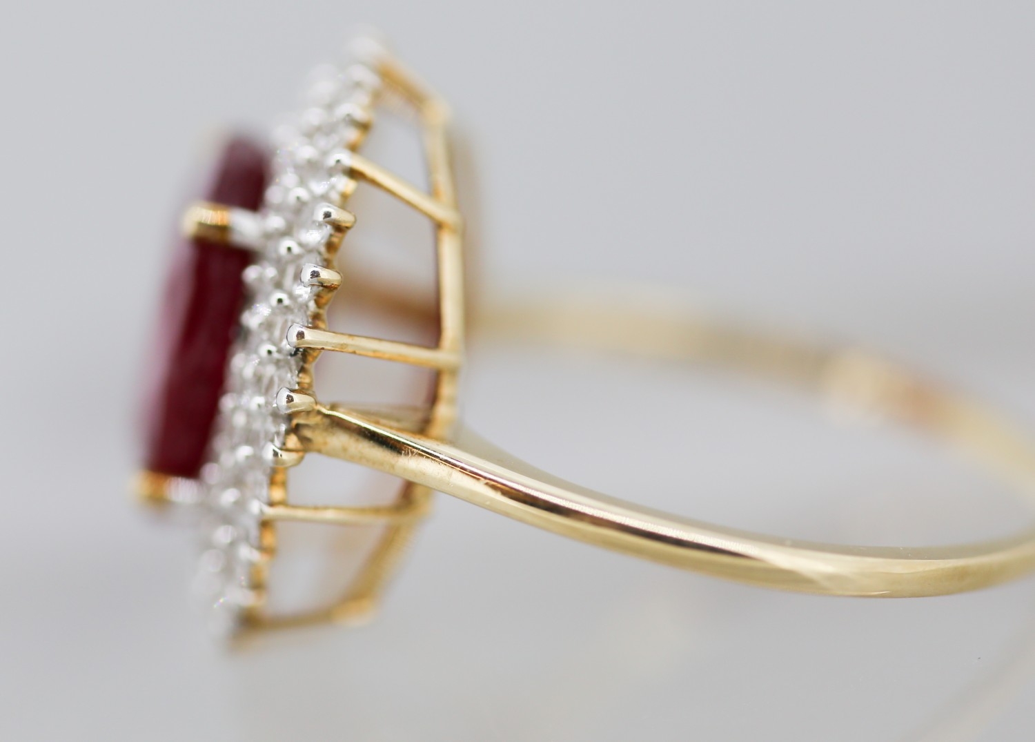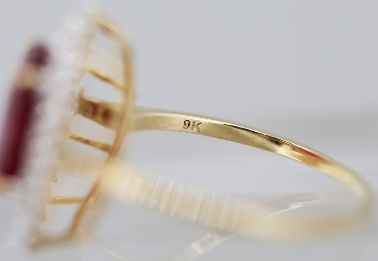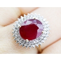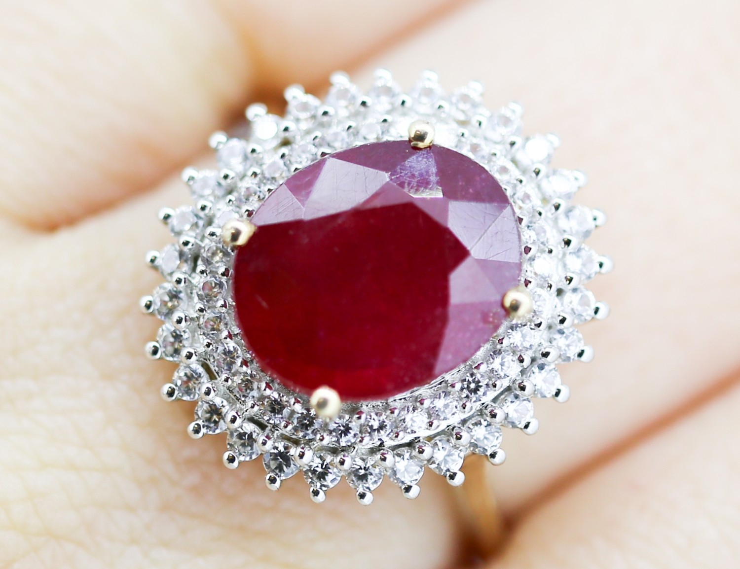 Ruby Centre Stone Ring with Gemstone Set Double Halo Surround Mounted in 9 Carat Yellow Gold Ring Size T and a Half