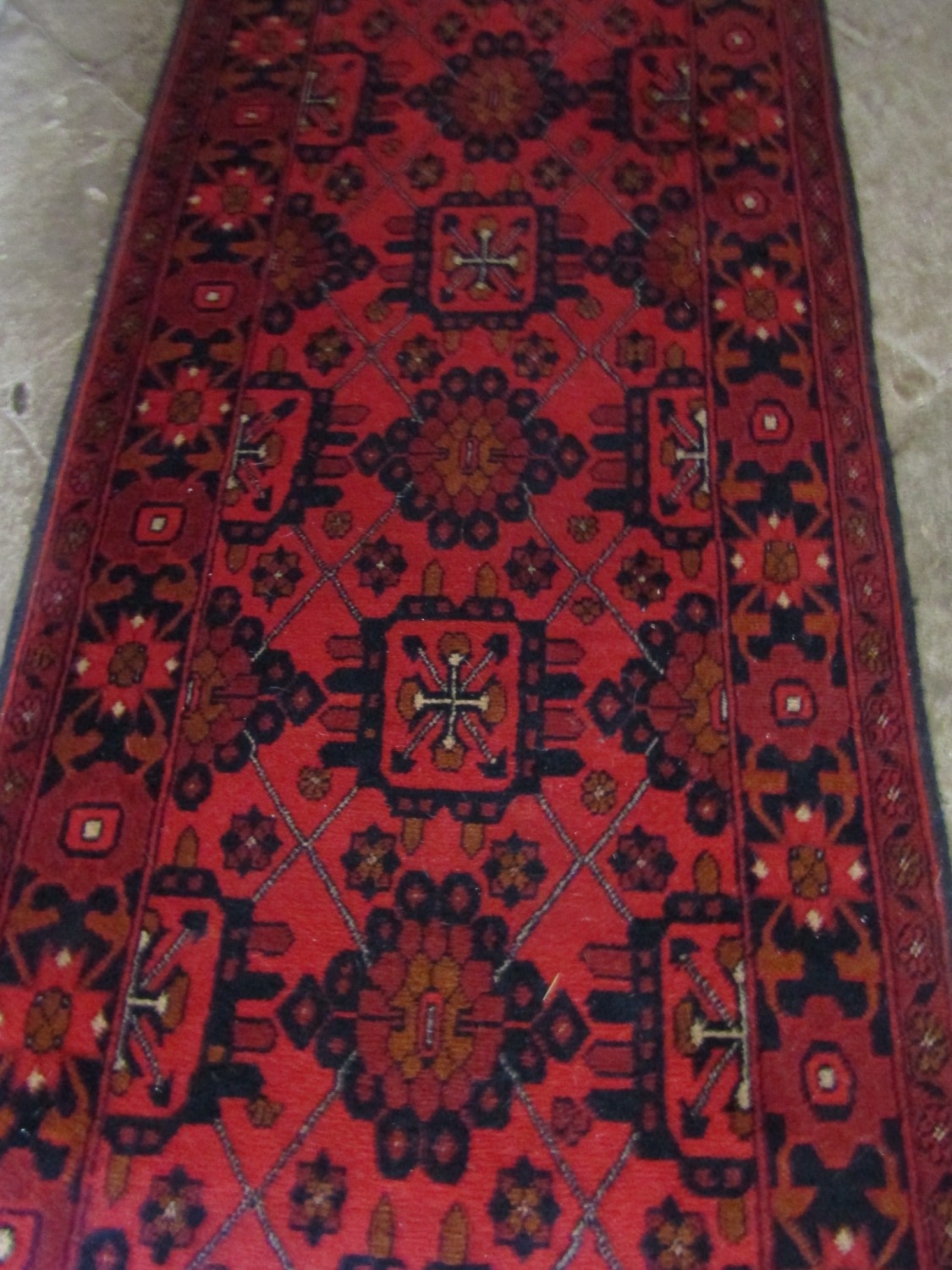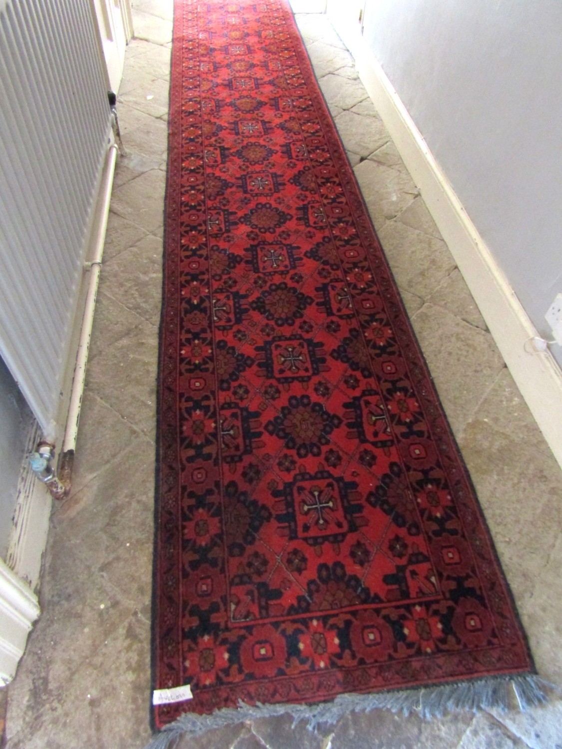 Persian Pure New Wool Runner Burgundy and Navy Ground Approximately 10ft 6 Inches Long