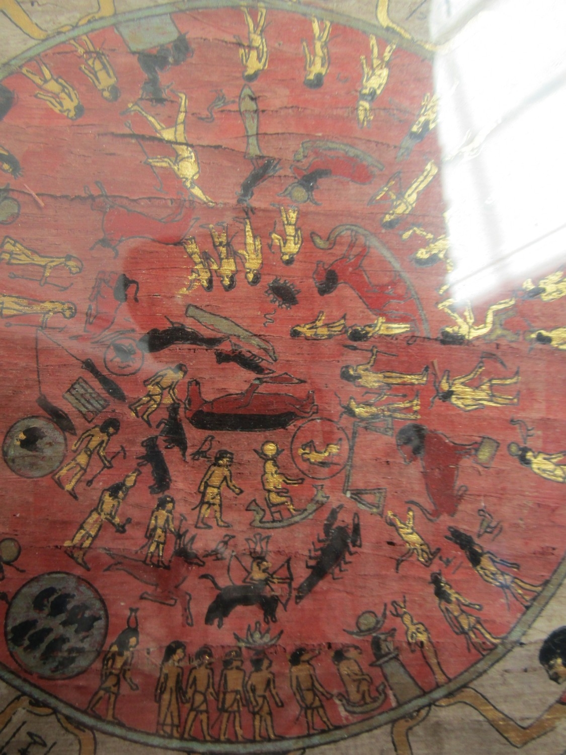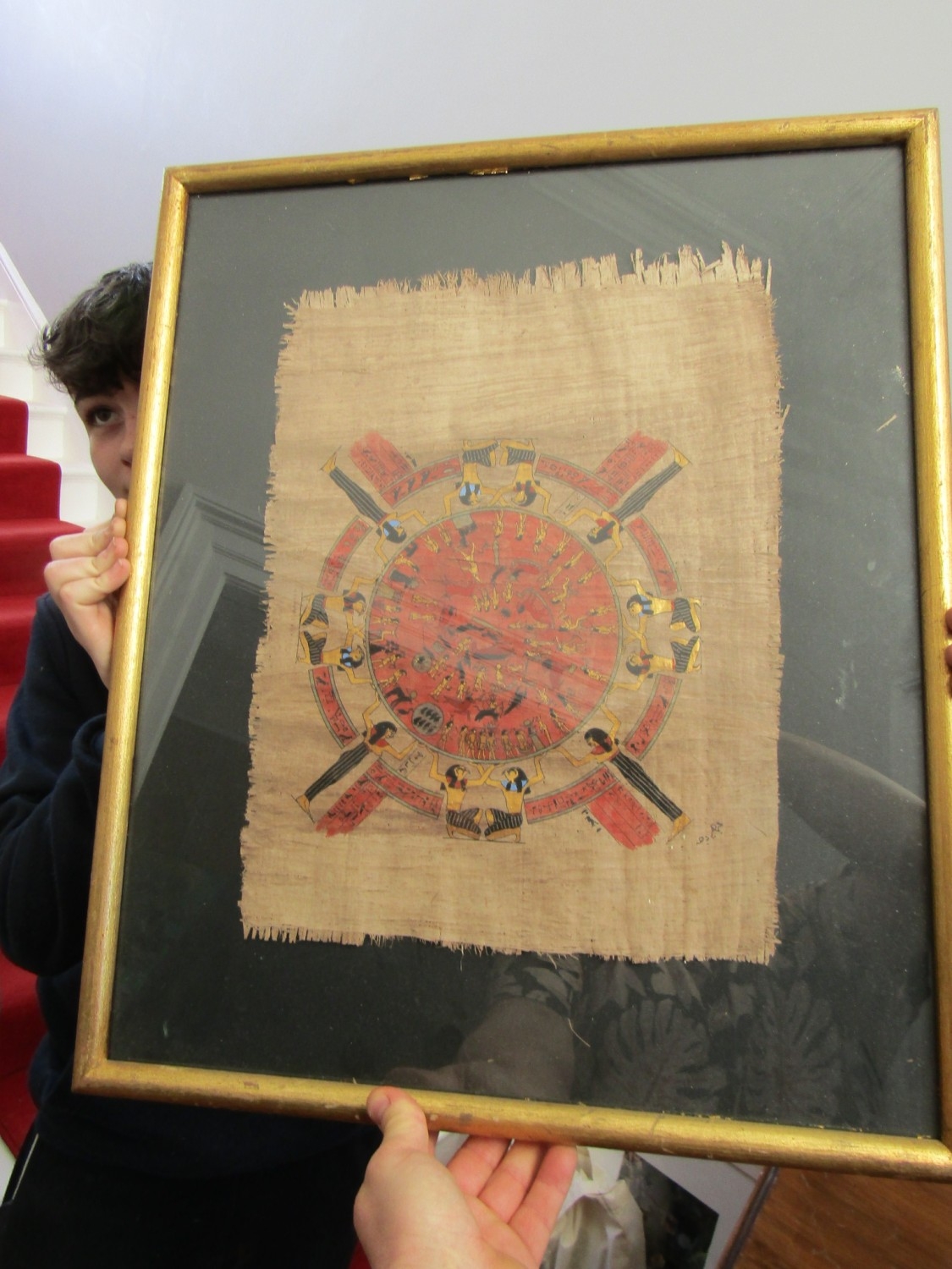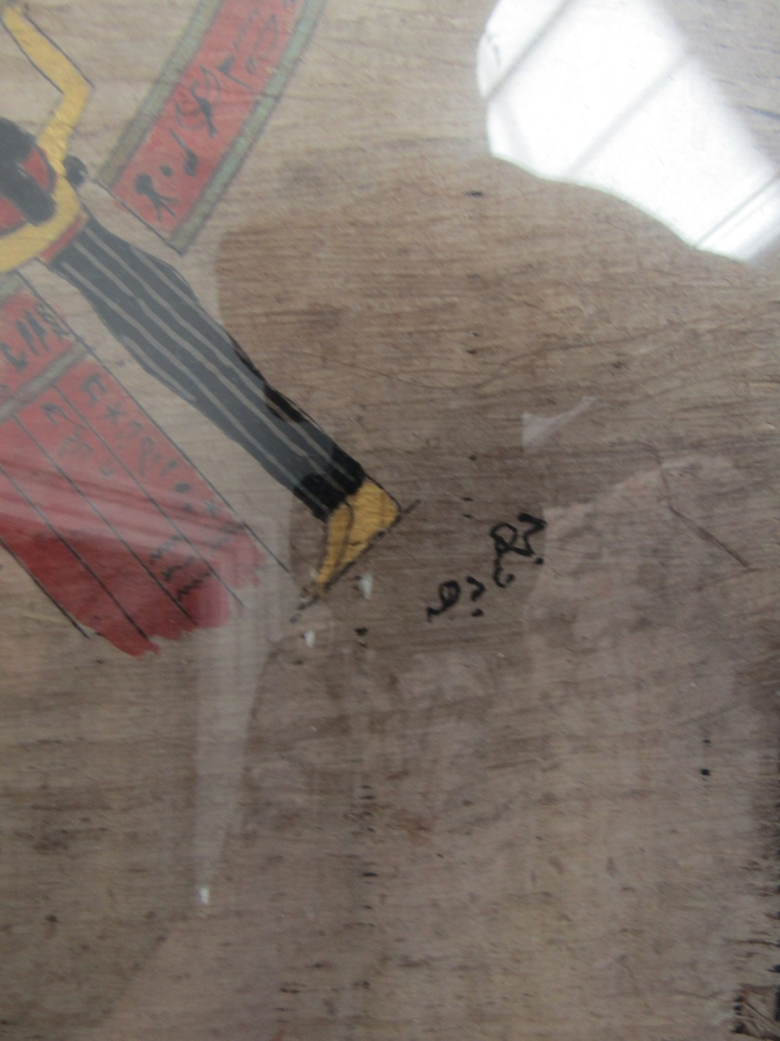 Egyptian Gilt and Ink Decorated Papyrus Astrology Chart with Figural Symbols etc Contained within Glazed and Gilded Frame Approximately 20 Inches High by 12 Inches Wide