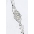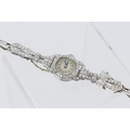 Finely Detailed Round Cut Diamond Set Ladies Evening Watch Mounted in Platinum with Safety Chain Bracelet Length 16cm