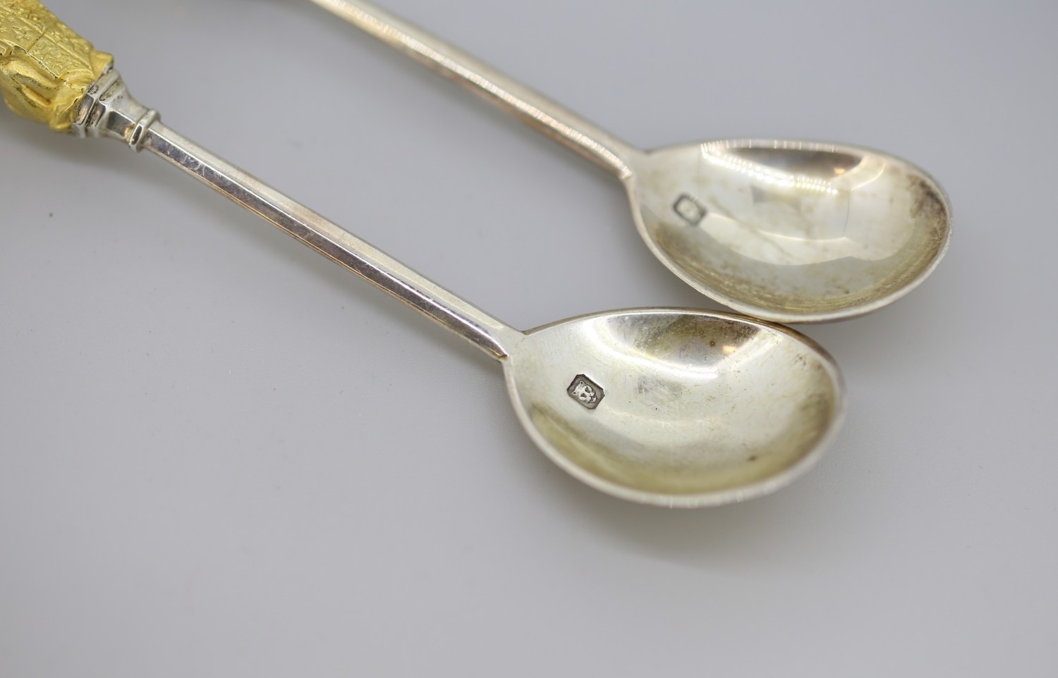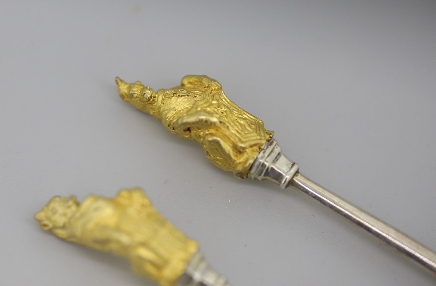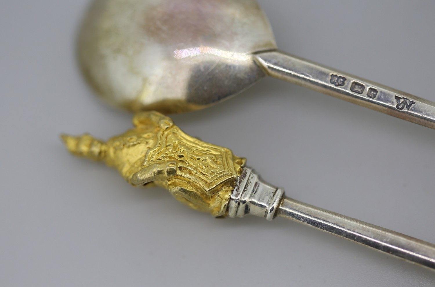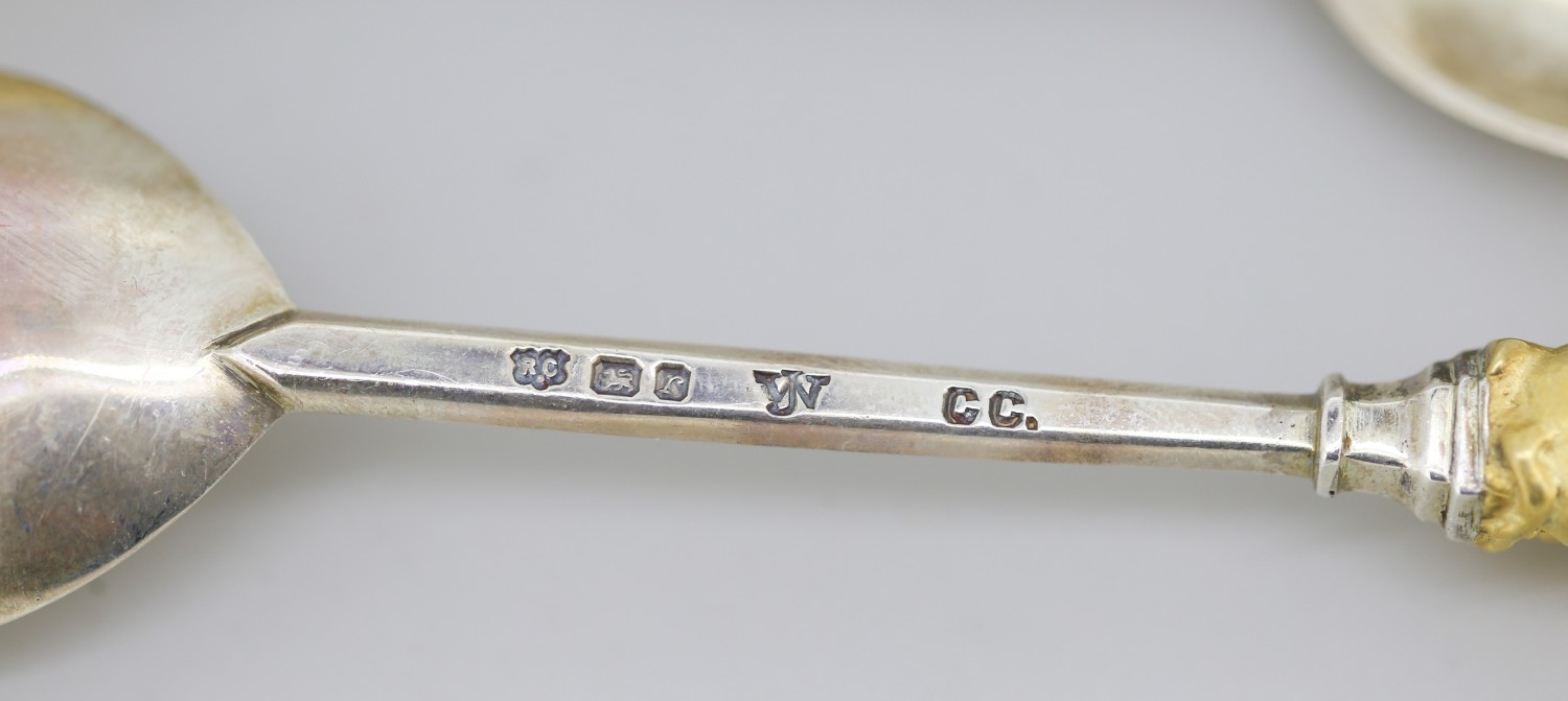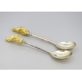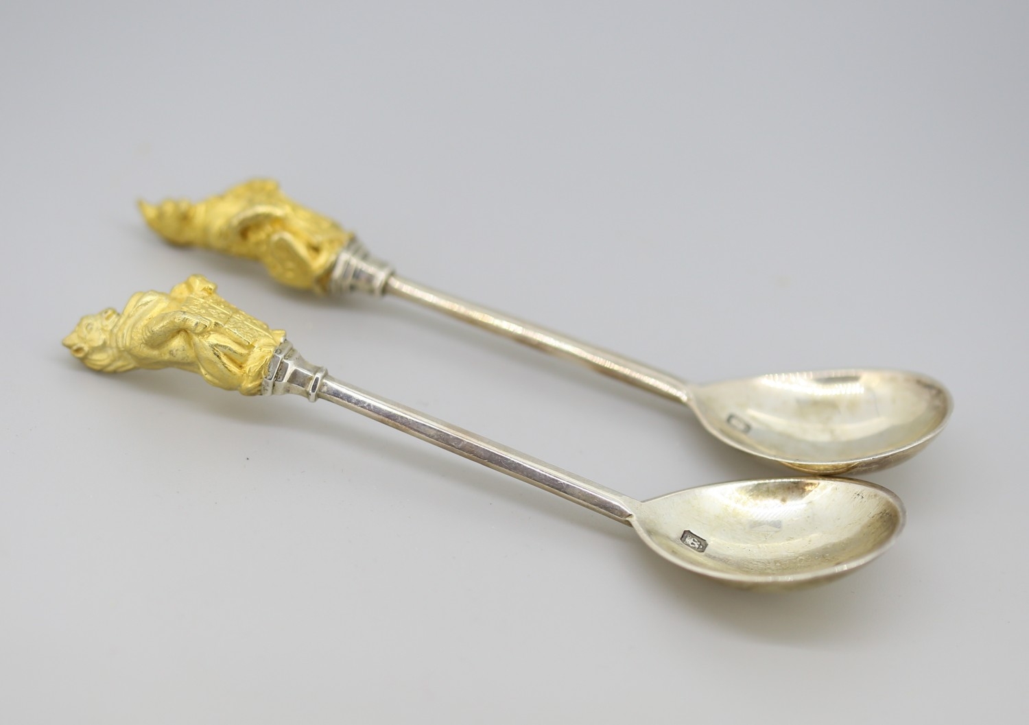 Two Silver Spoons with Silver Gilt Figural Finials 'The Queens Beast' 12cm Hallmarked William Comyns & Sons Ltd, London 1972