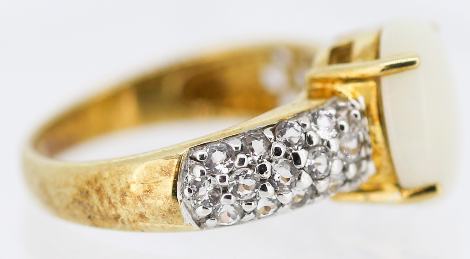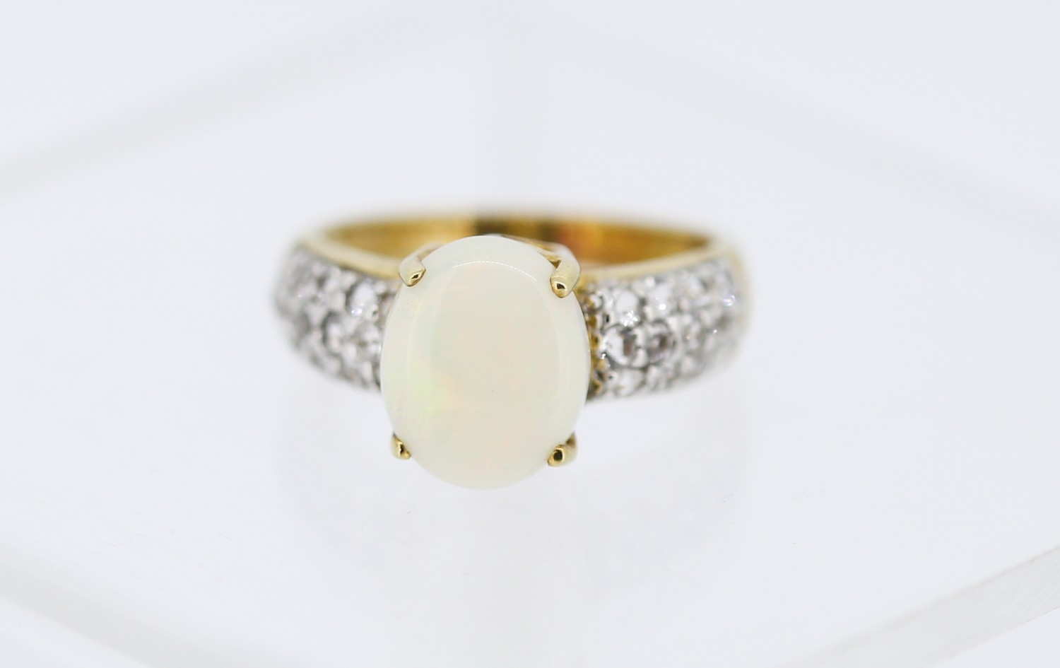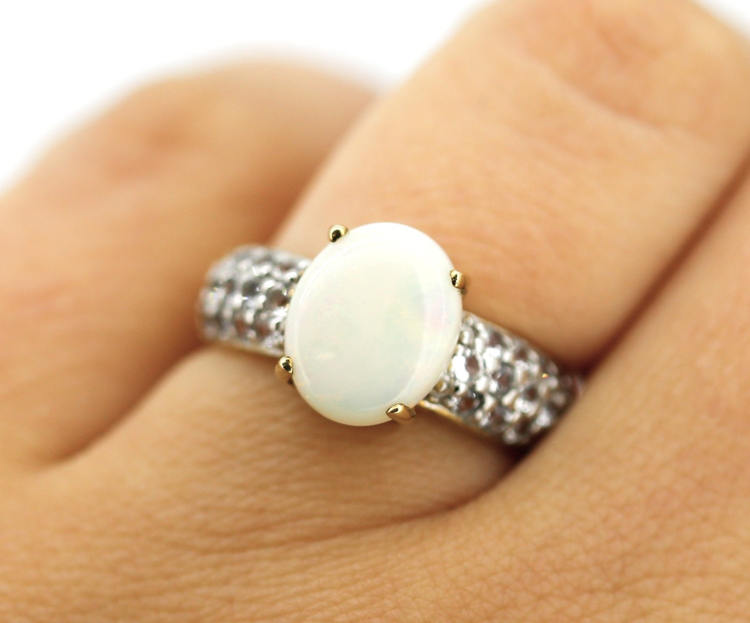Opal Set Ring with Gemstone Cluster Set Shoulders Mounted in 9 Carat Yellow Gold Ring Size N