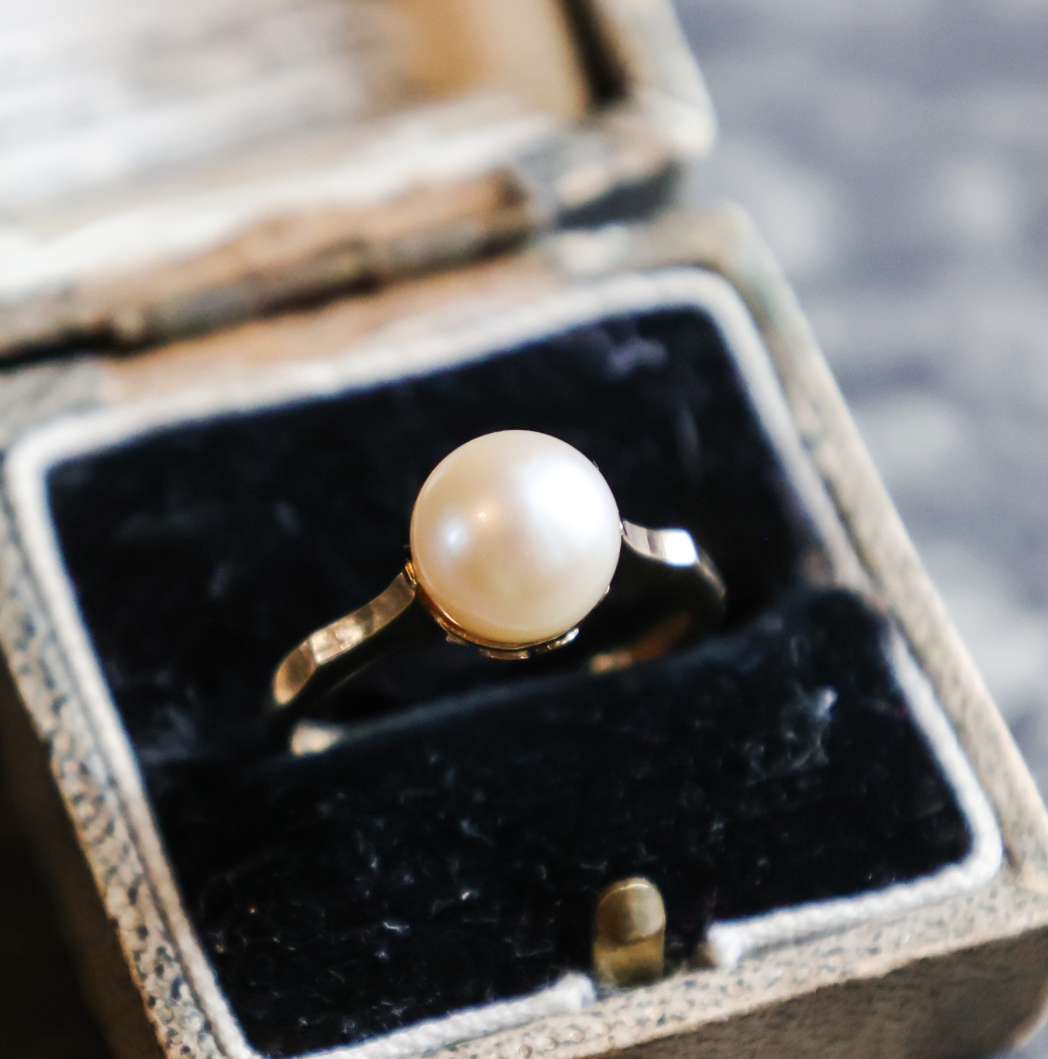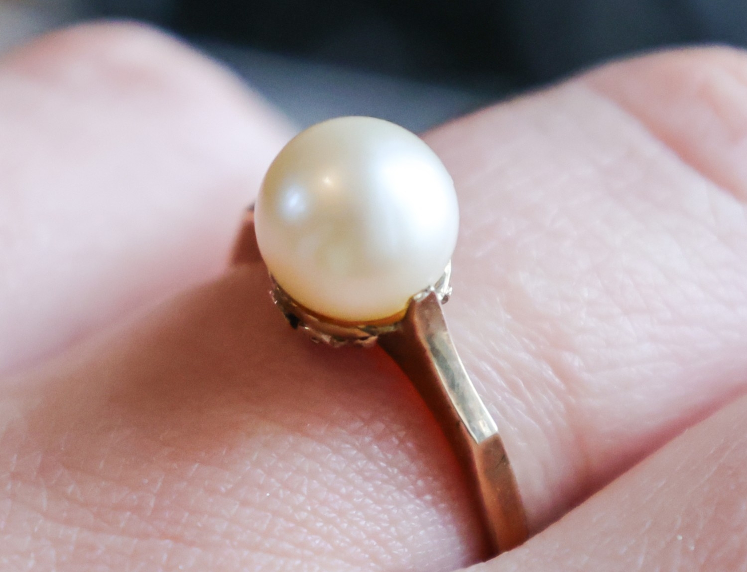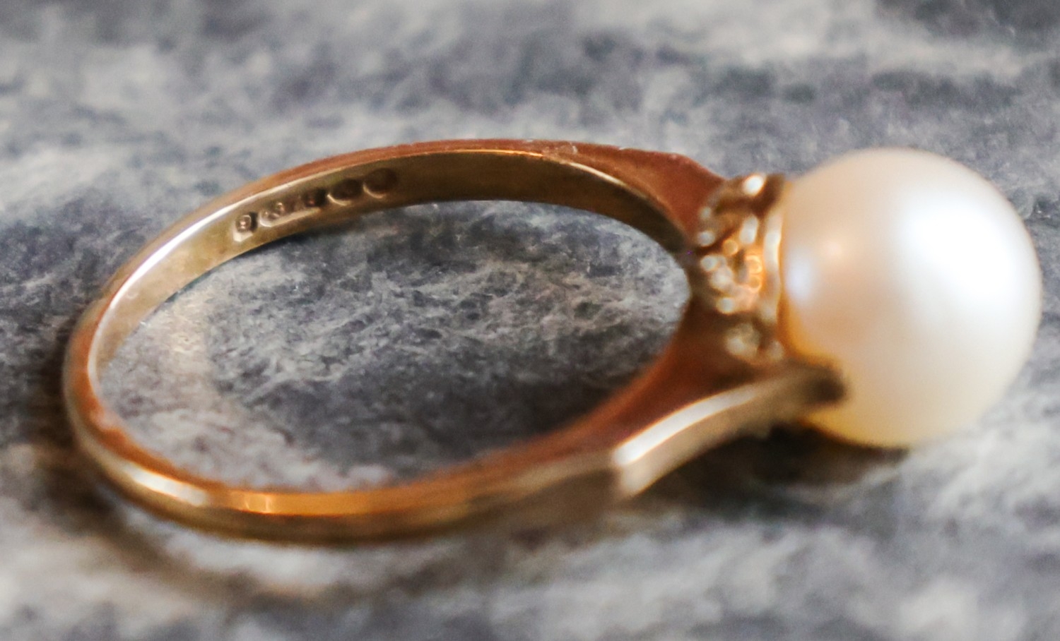 Pearl Set Nine Carat Yellow Gold Ladies Ring Band Size N