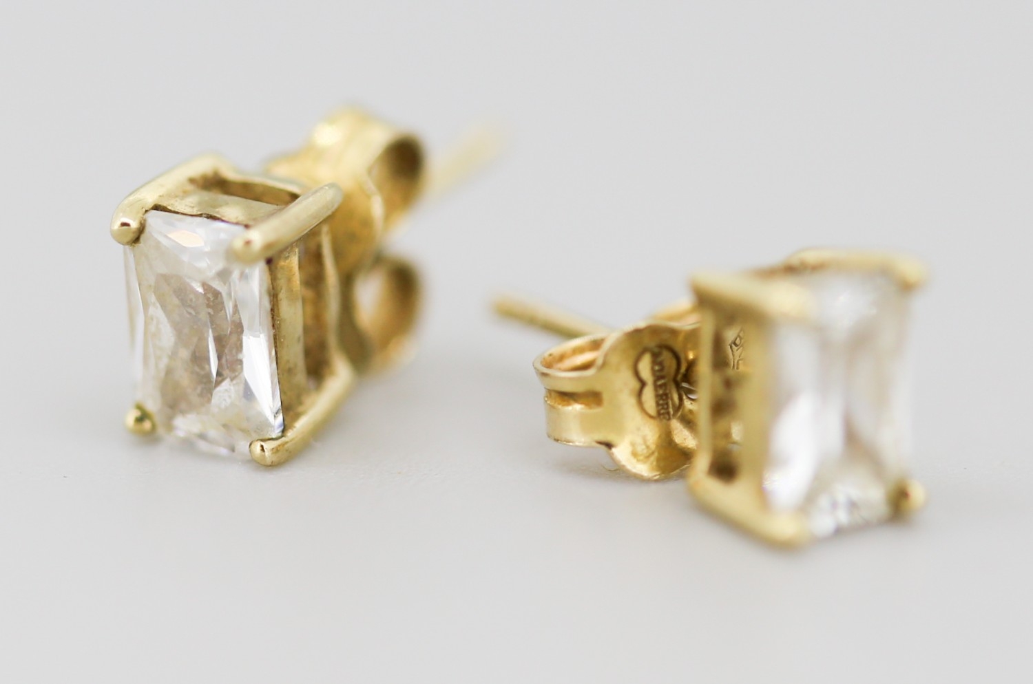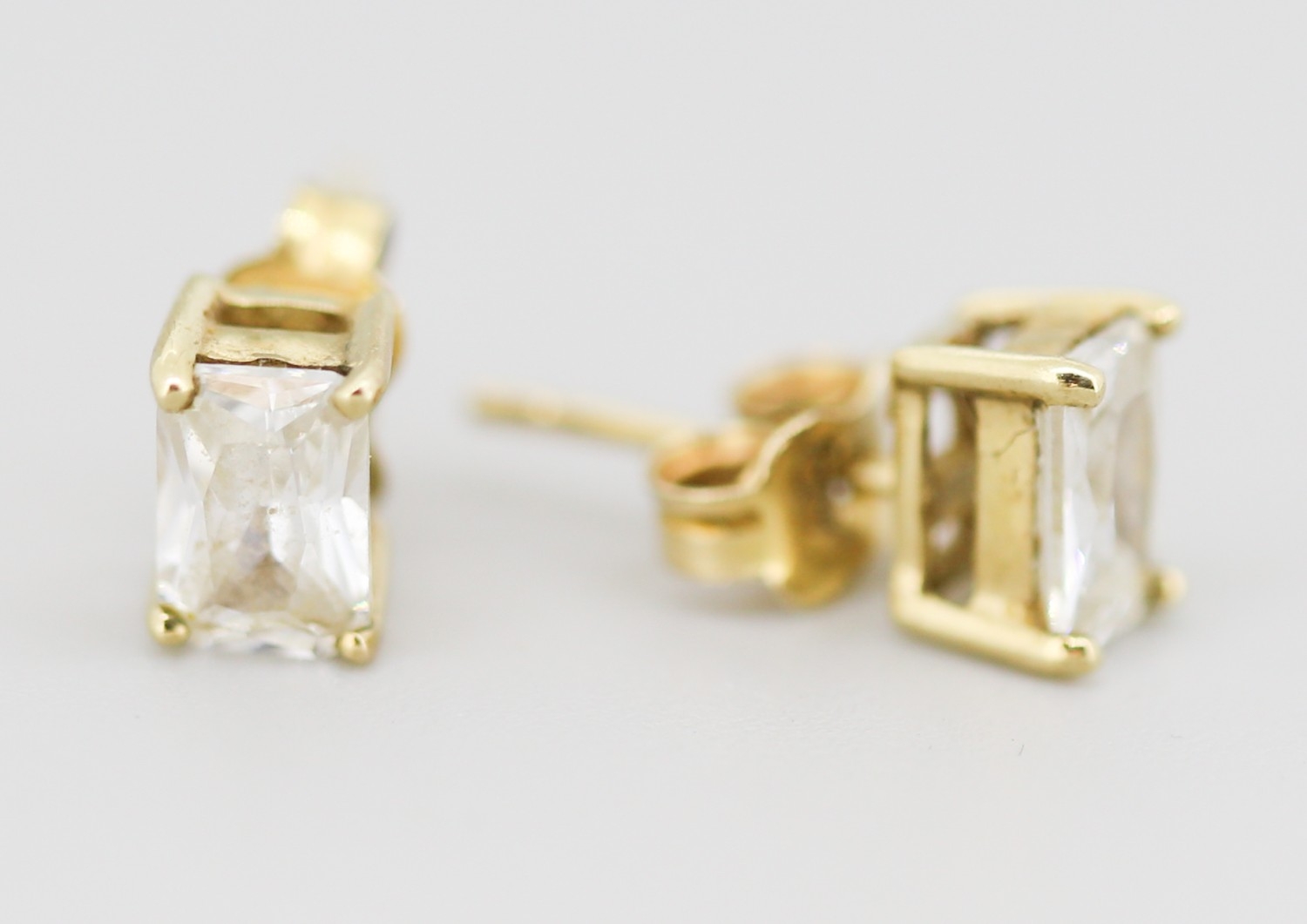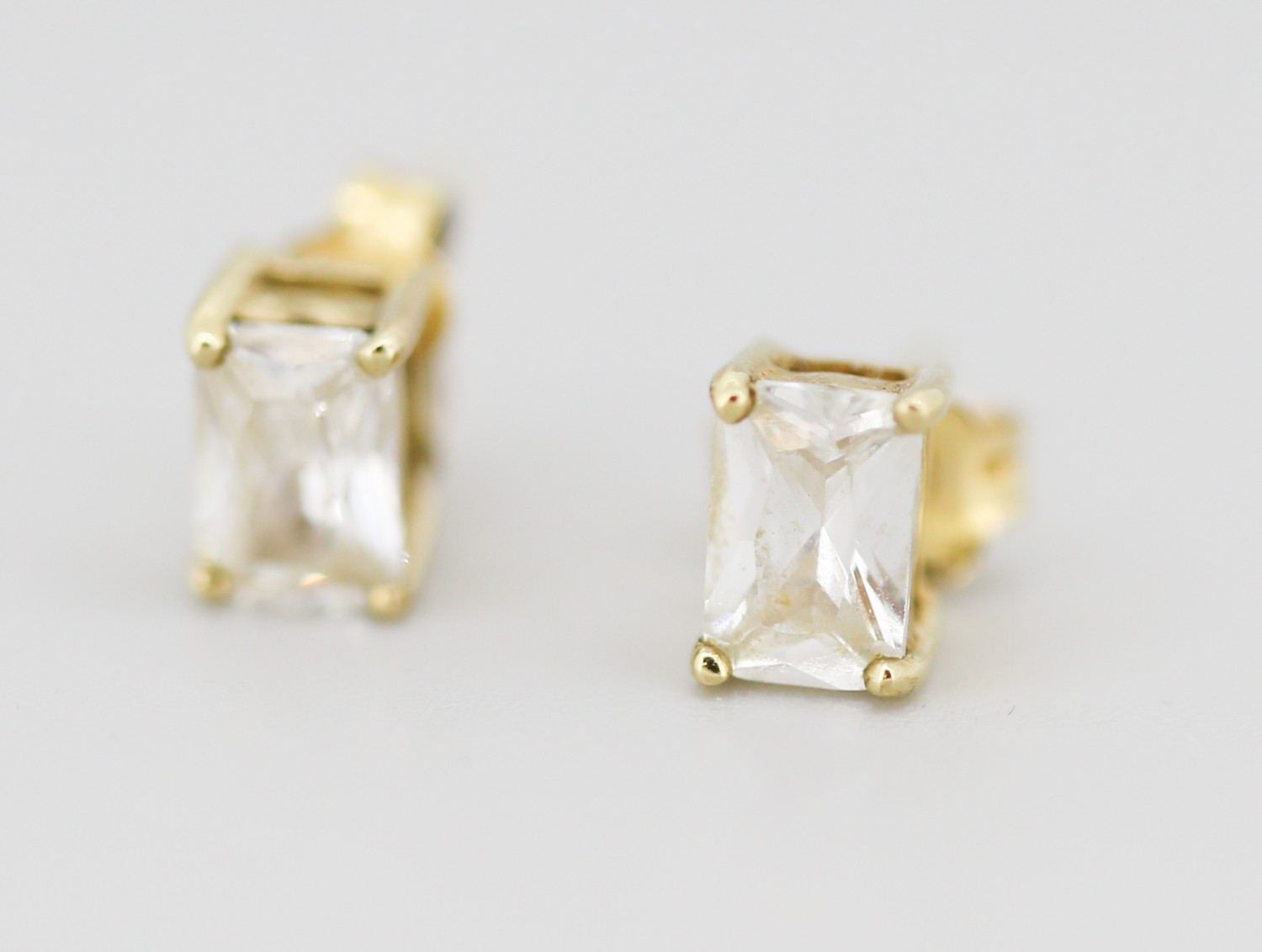 Pair of Emerald Cut Gemset Earrings Mounted in 9 Carat Yellow Gold 6mm