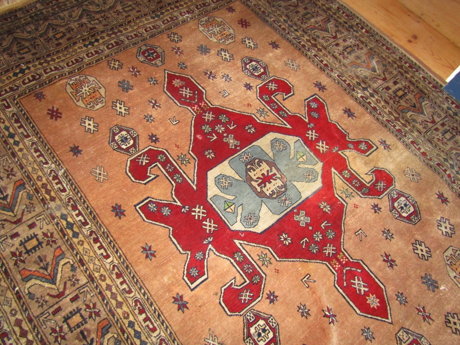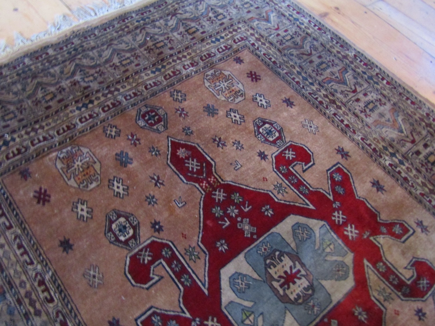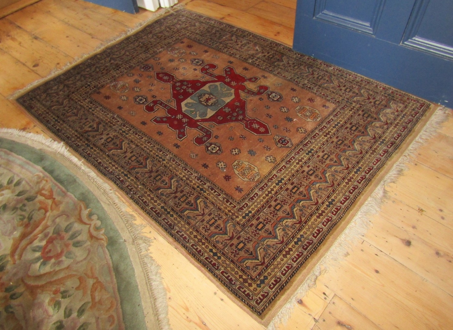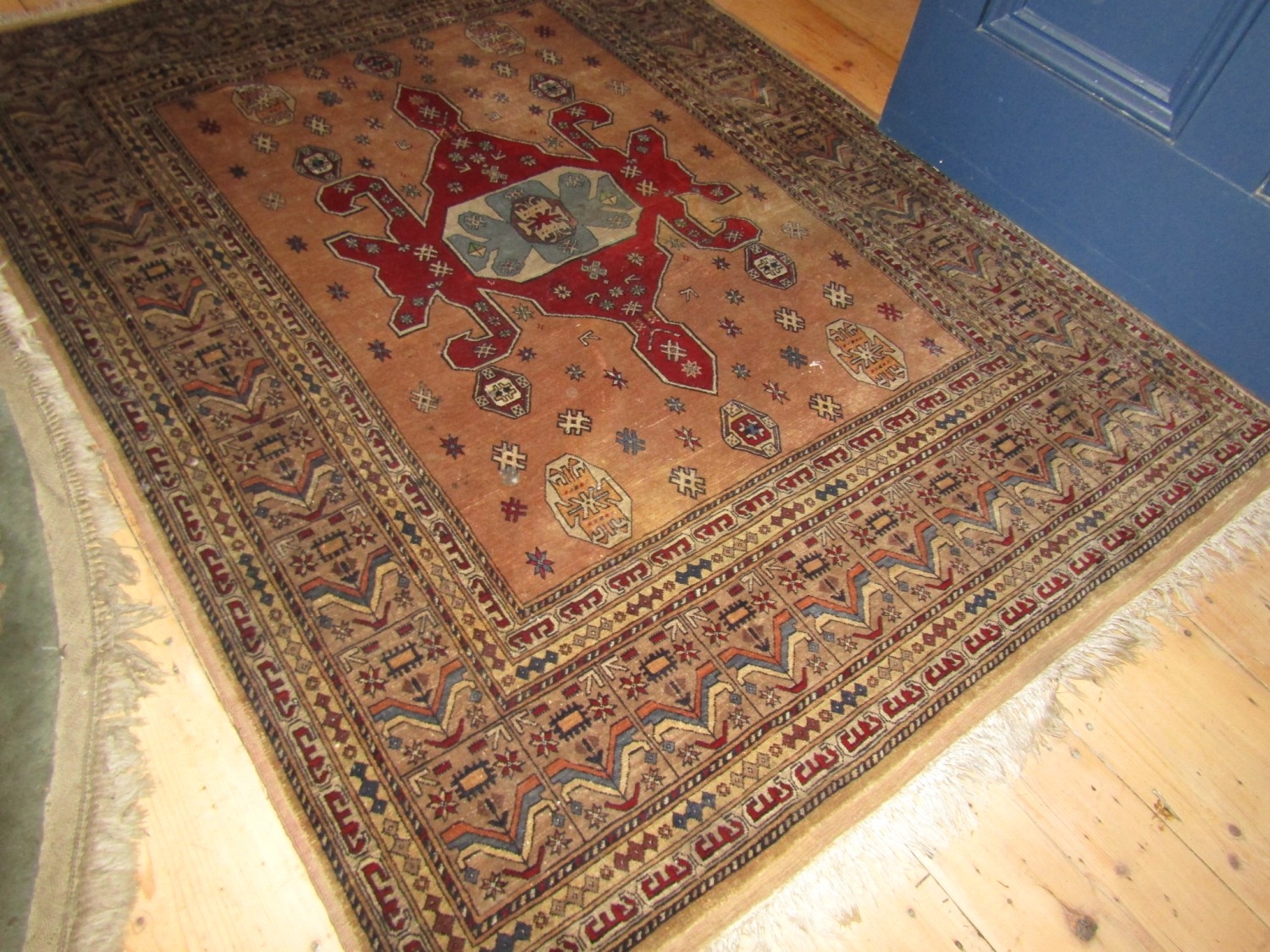 Persian Pure Wool Rug Burgundy and Ochre Ground Patterned Borders with Central Medallion Motif Decoration Approximately 6ft Long x 4ft Wide
