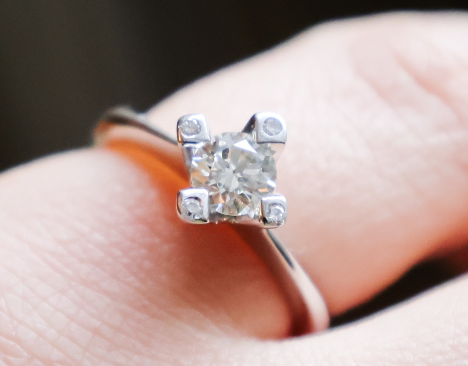 Diamond Solitaire Ring Mounted on Eighteen Carat Yellow Gold Band Good Scintillation Band Size L