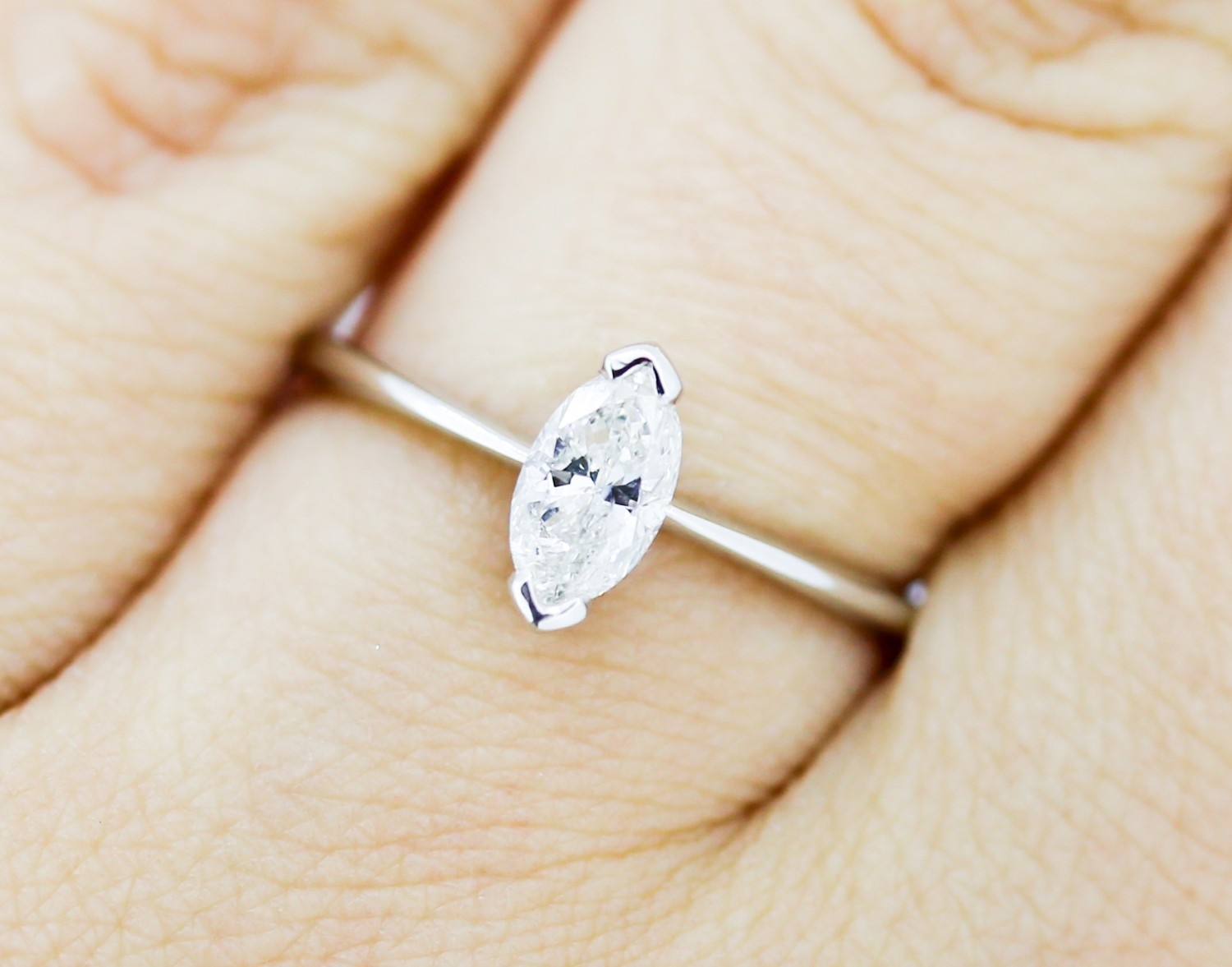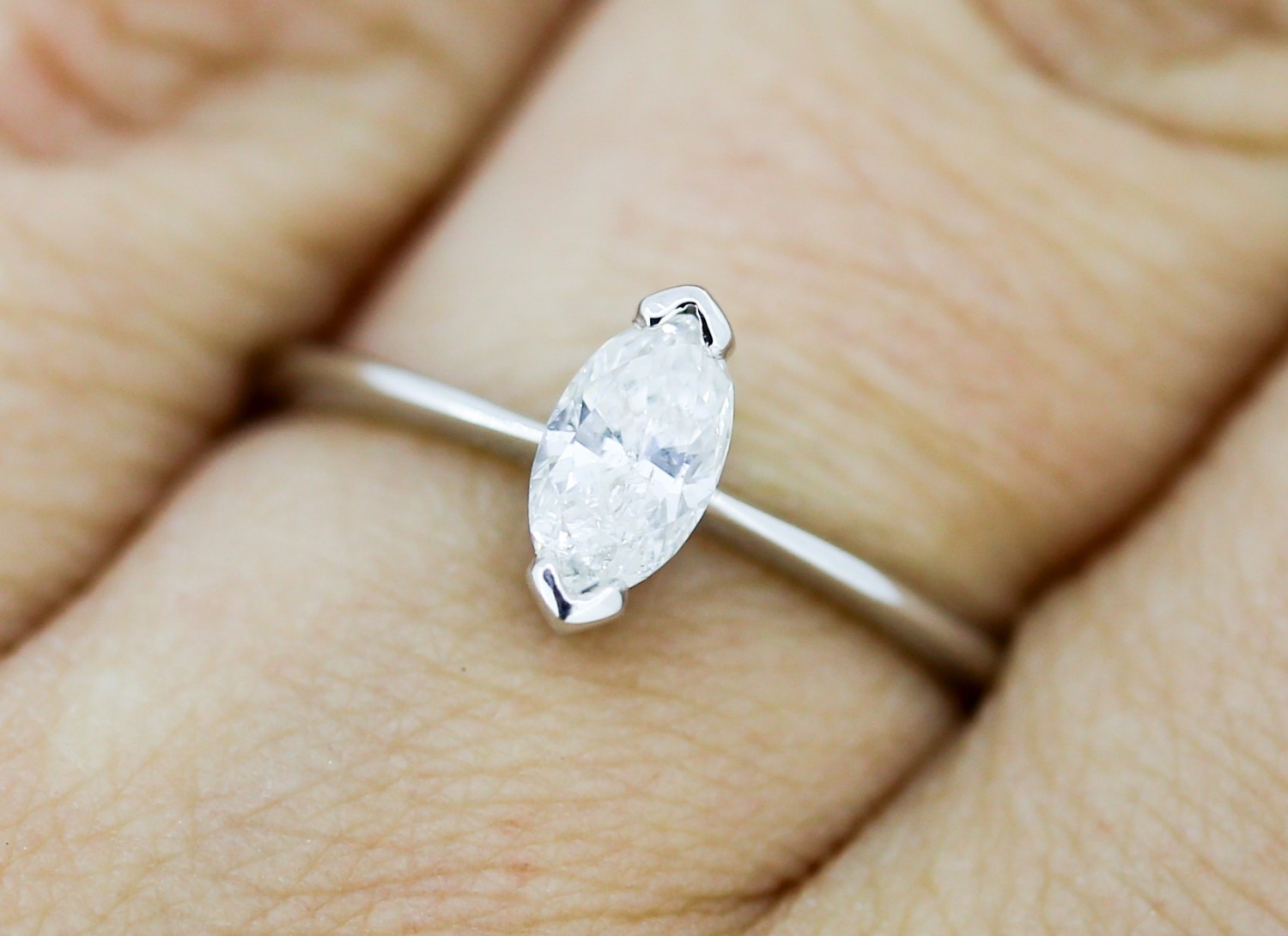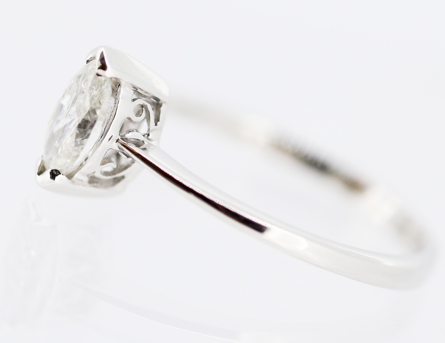 Marquise Cut Diamond Solitaire Ring Mounted in 18 Carat White Gold Total Diamond Carat Weight Approximately .50ct Ring Size O