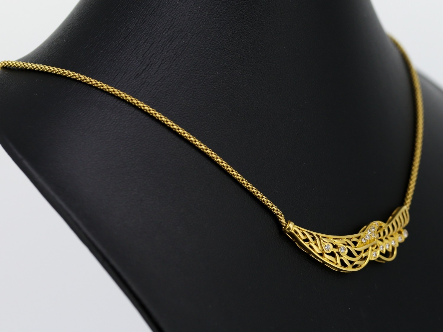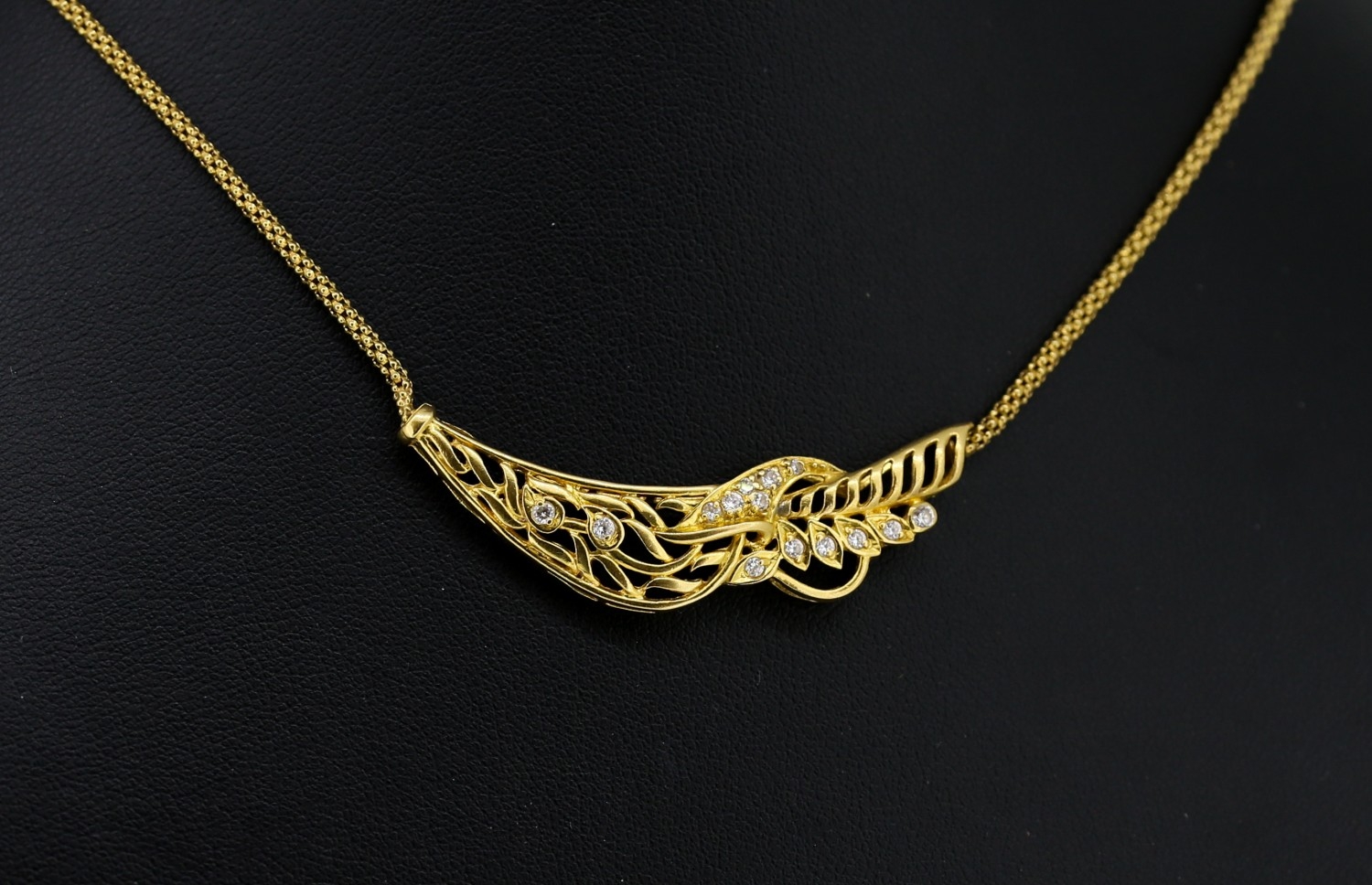 Attractively Detailed Diamond Set Floral Motif Pendant Necklace Mounted in 18 Carat Yellow Gold 45cm Long