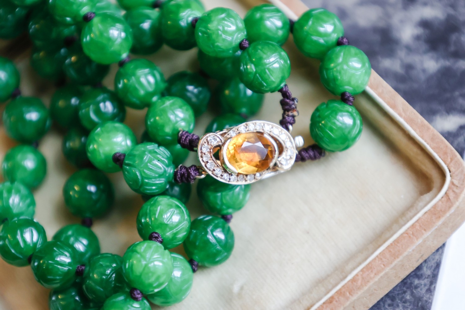 Pearl Set Necklace with Citrine and Gem Stone Clasp Twin Str...