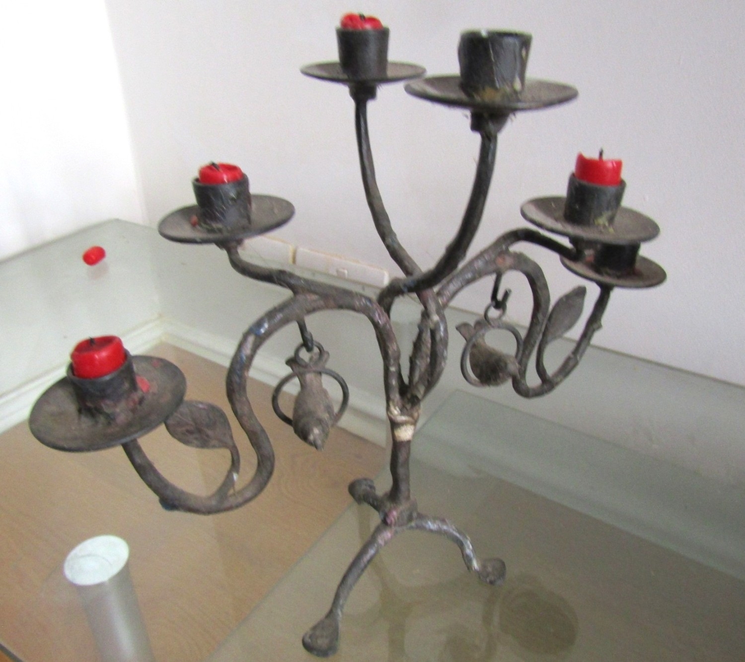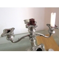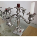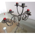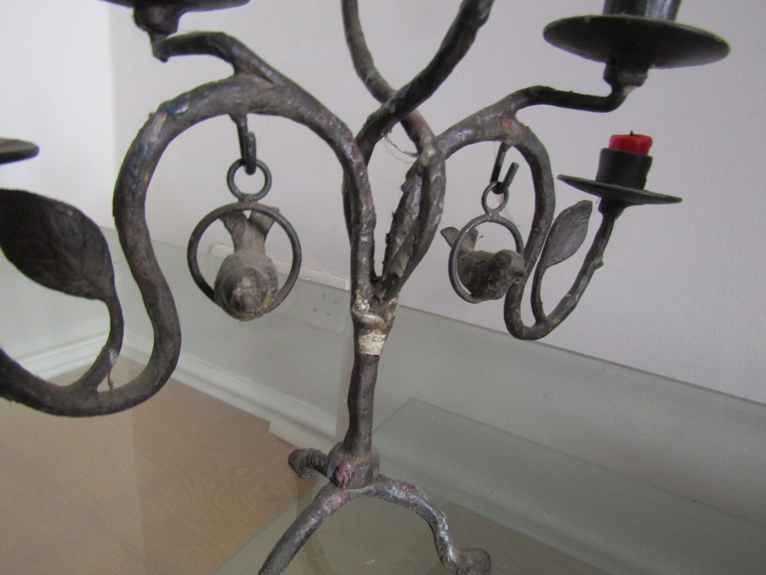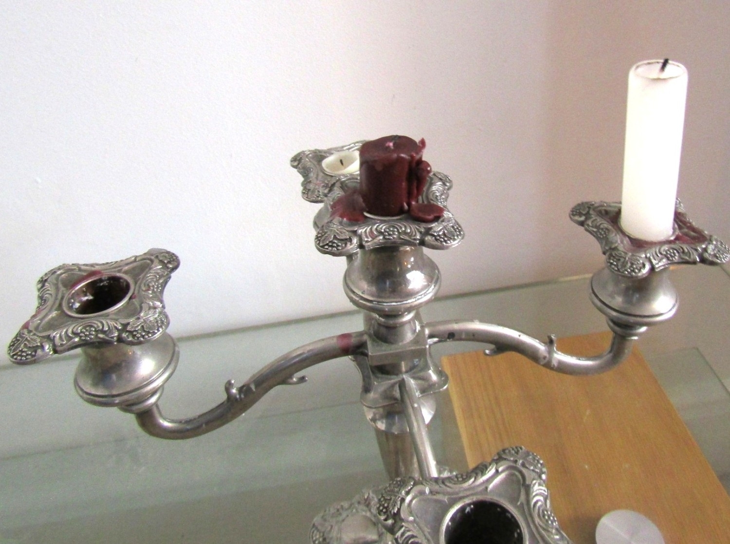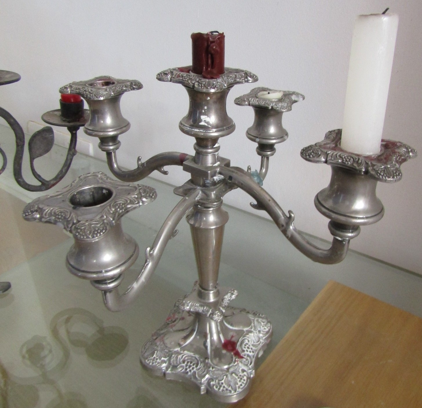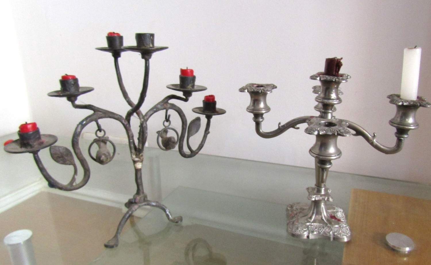 Two Table Candelabras One Wrought Metal and the other a Five Sconce Old Sheffield Plate Example