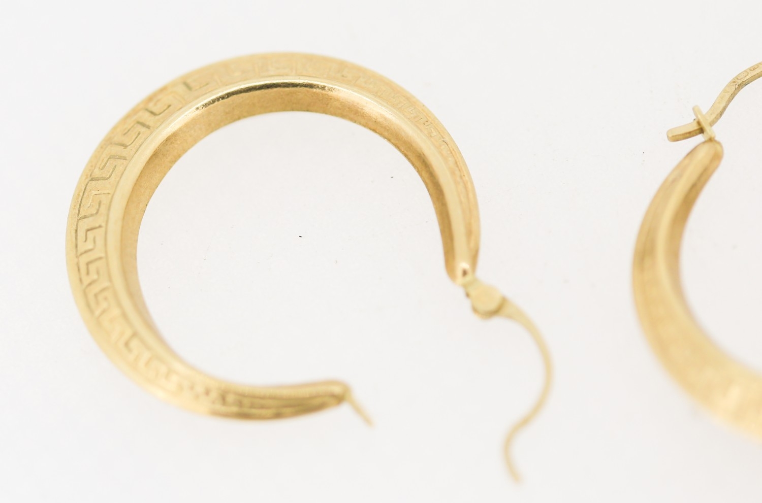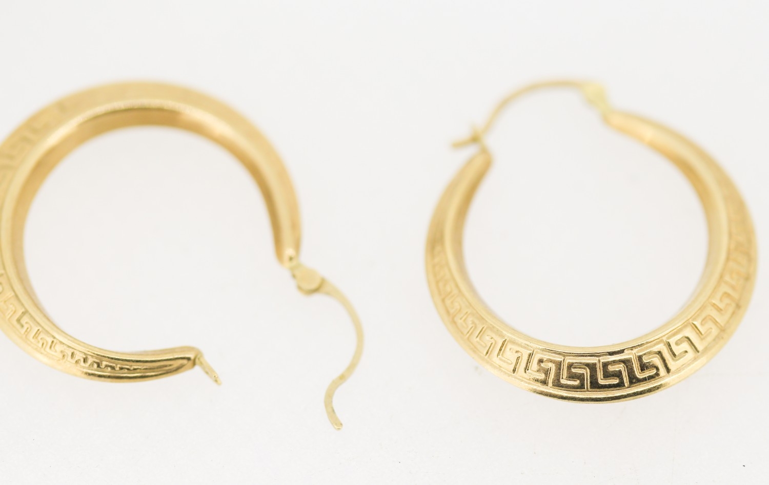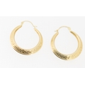 Pair of 9 Carat Yellow Gold Greek Key Motif Drop Hoop Earrin...