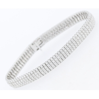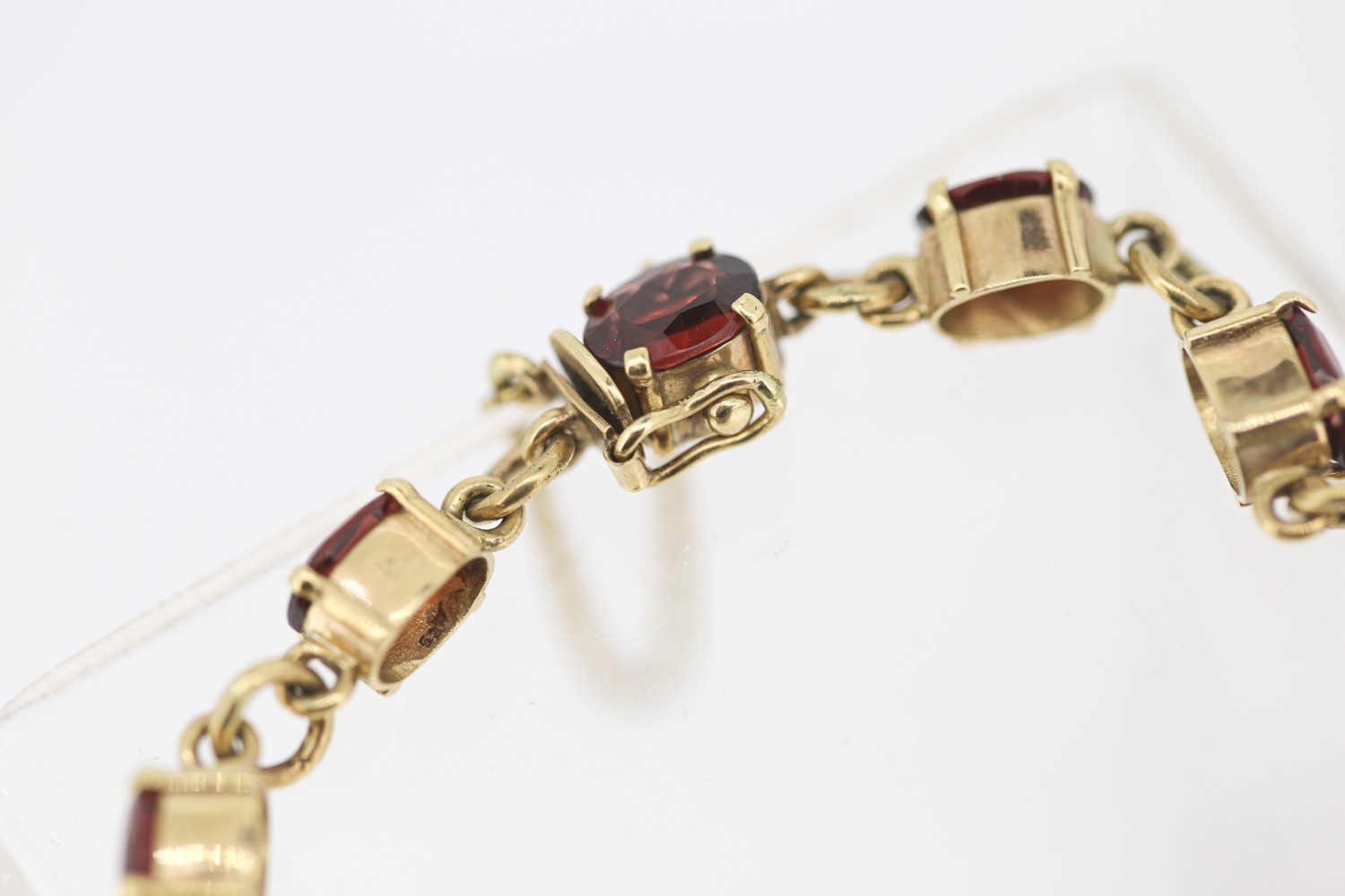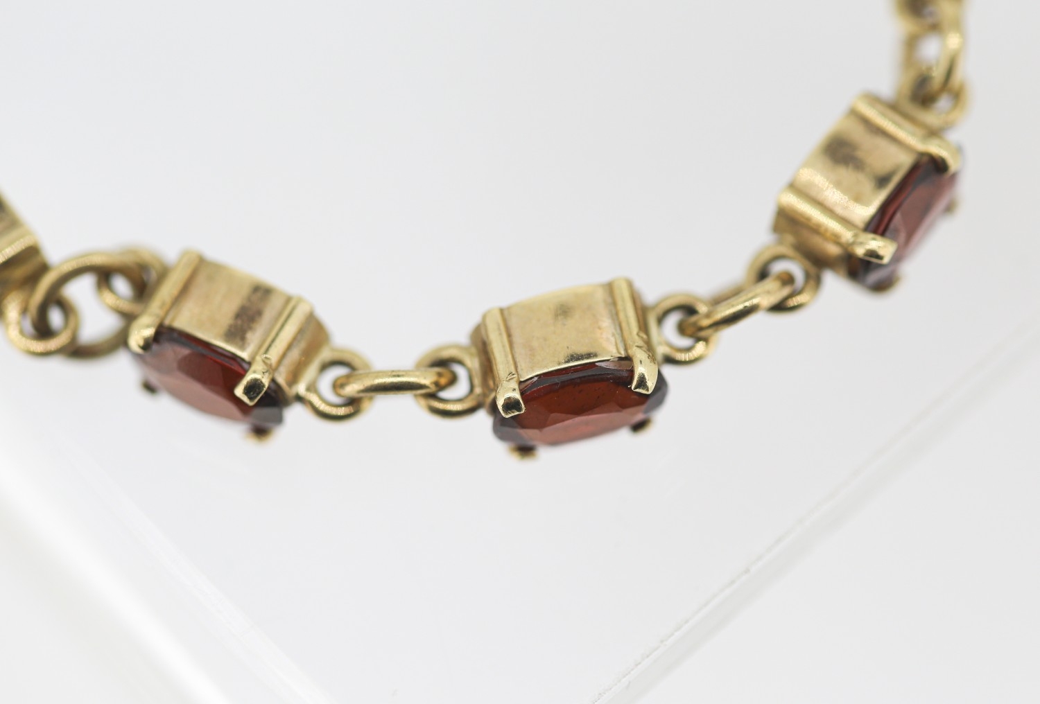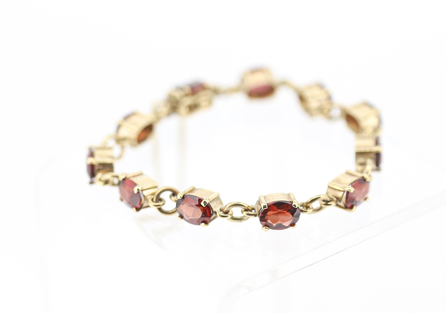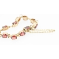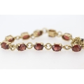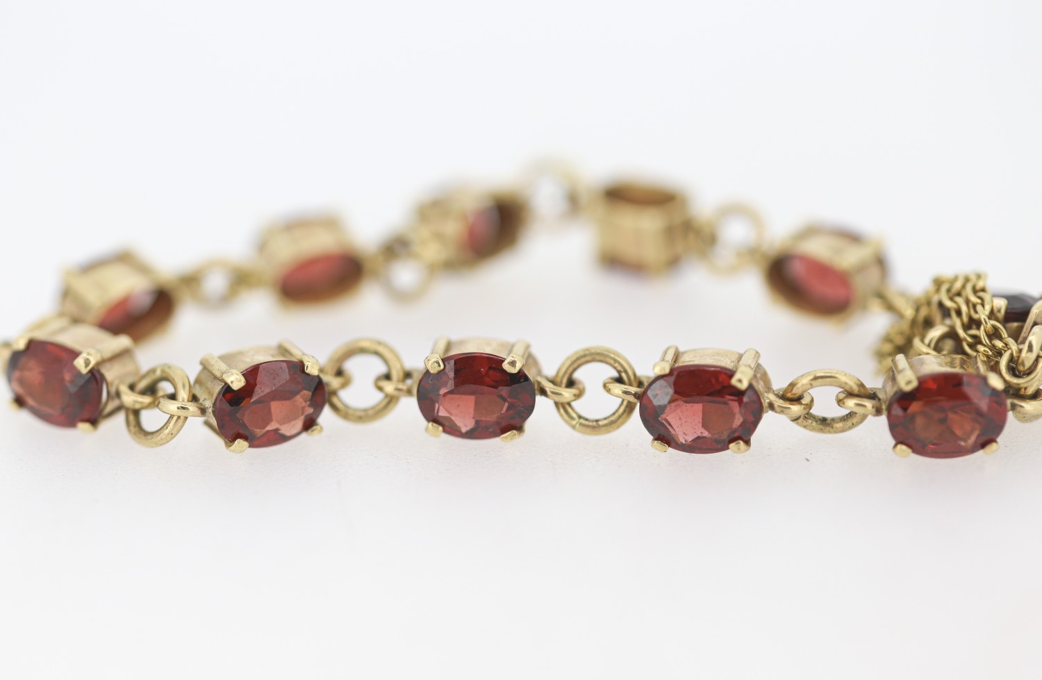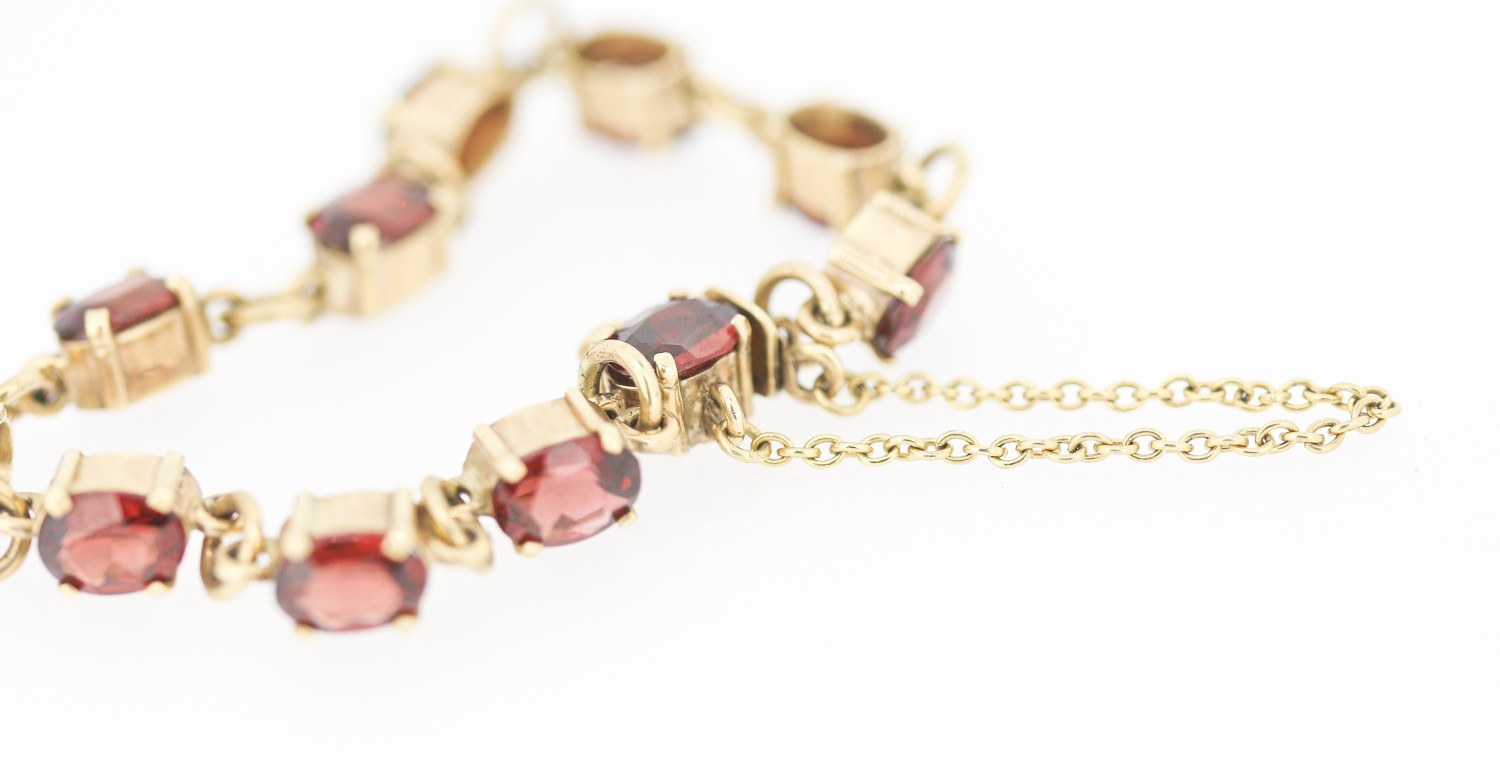 Garnet Eleven Stone Set Bracelet Mounted in 9 Carat Yellow Gold with Safety Chain 16.5cm Long