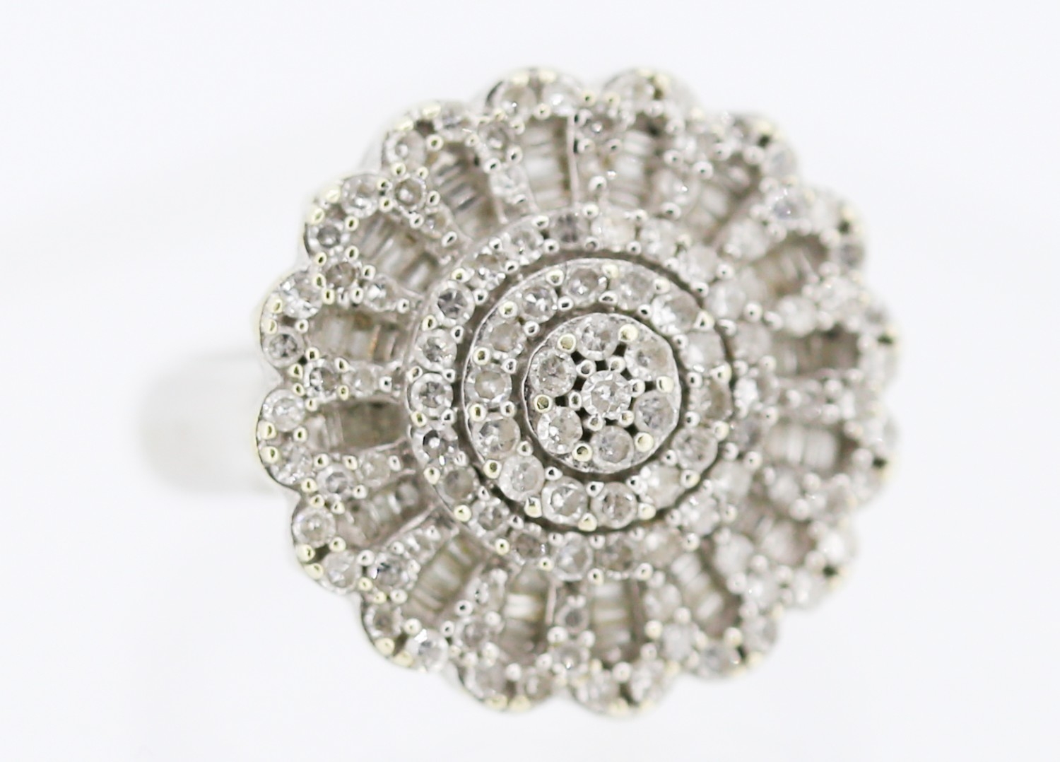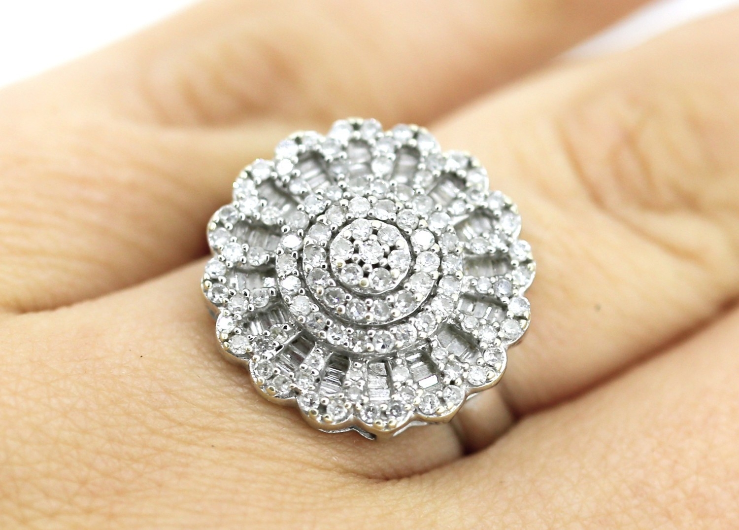 Finely Detailed Diamond Set Cluster Ring Mounted in 10 Carat White Gold Ring Size P Total Diamond Carat Weight Approximately 1.5ct