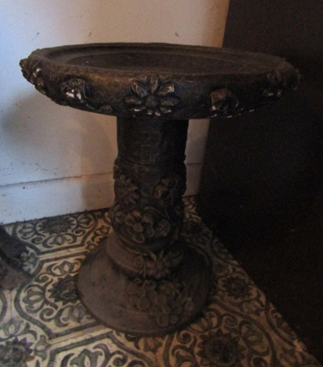 Composite Stone Garden or Patio Bird Bath Approximately 24 Inches High x 20 Inches Diameter