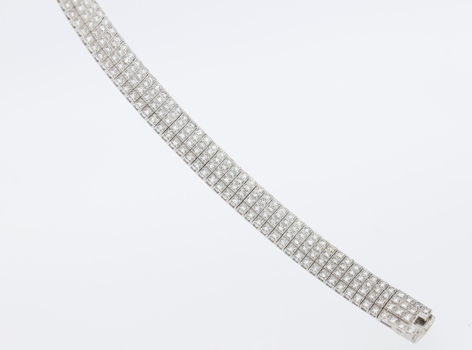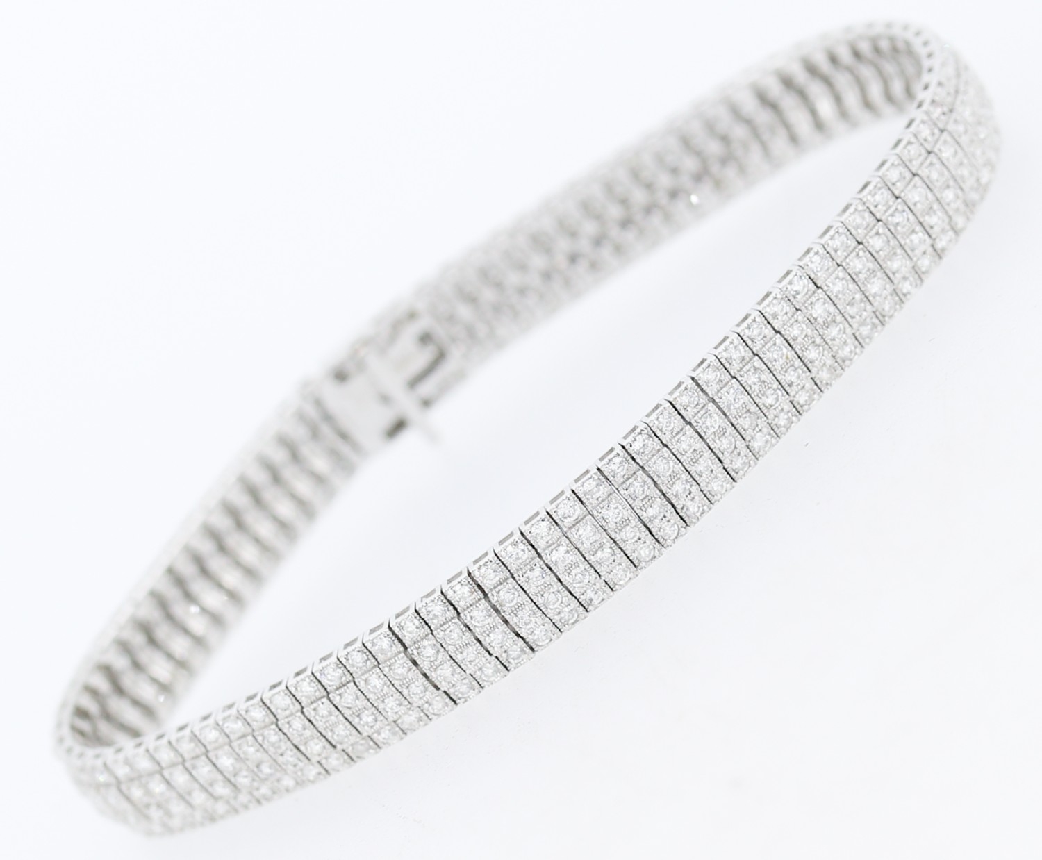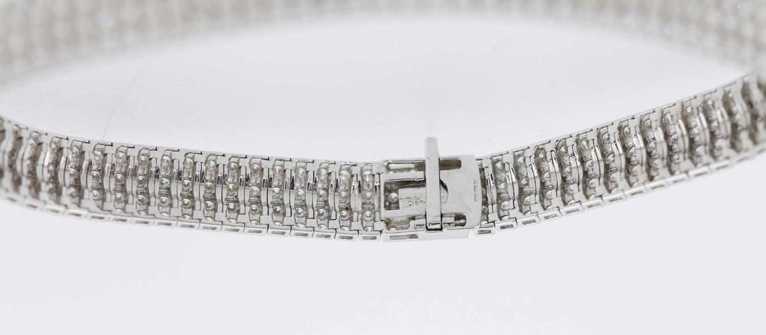Finely Detailed Diamond Four Row Cluster Set Bracelet Mounted in 18 Carat White Gold Total Diamond Carat Weight Approximately 6ct 19cm Long