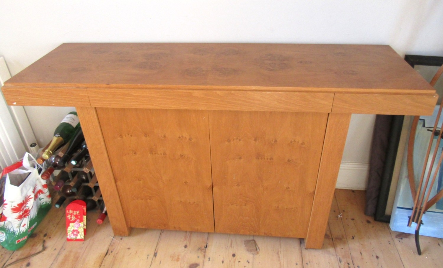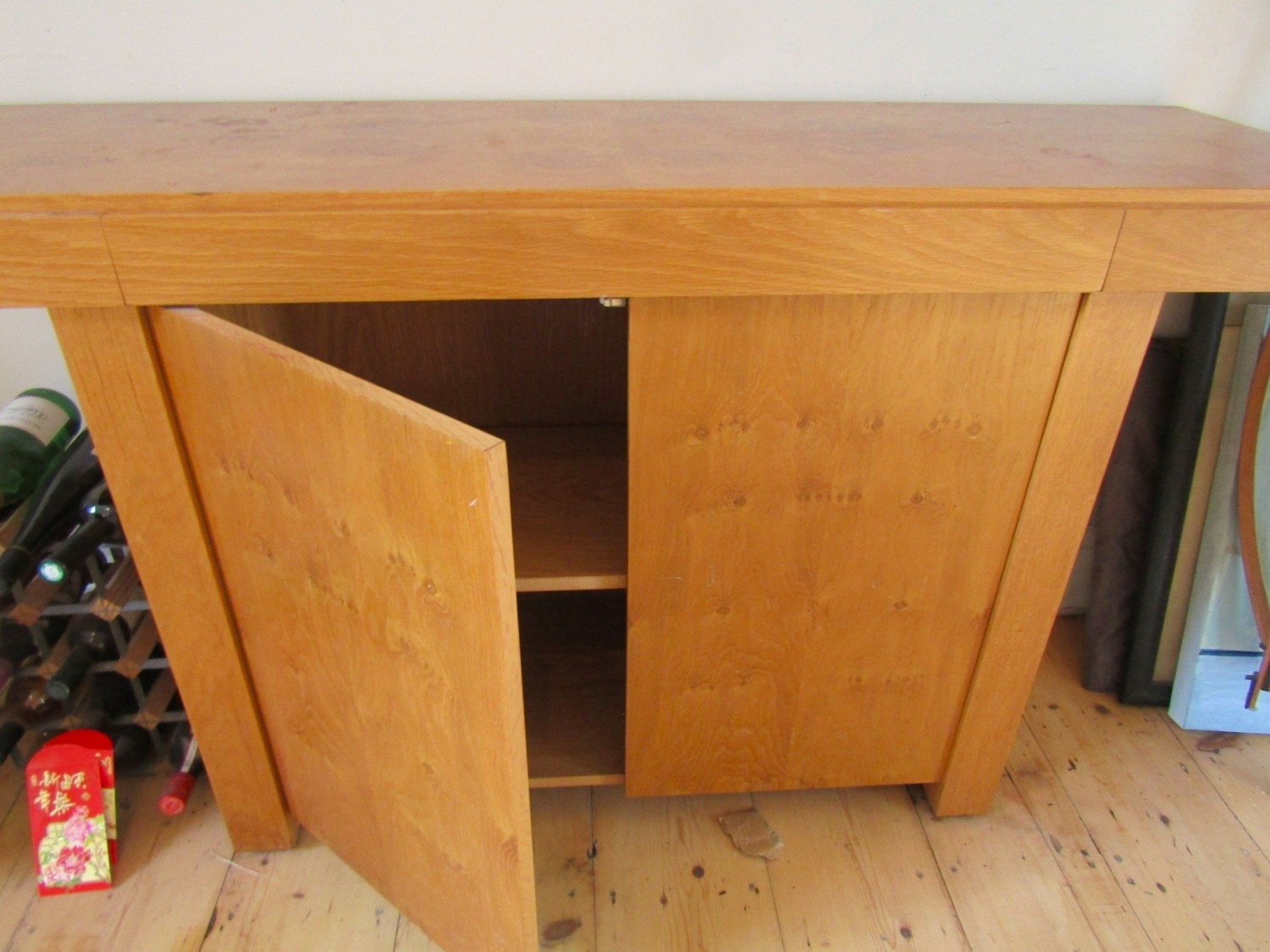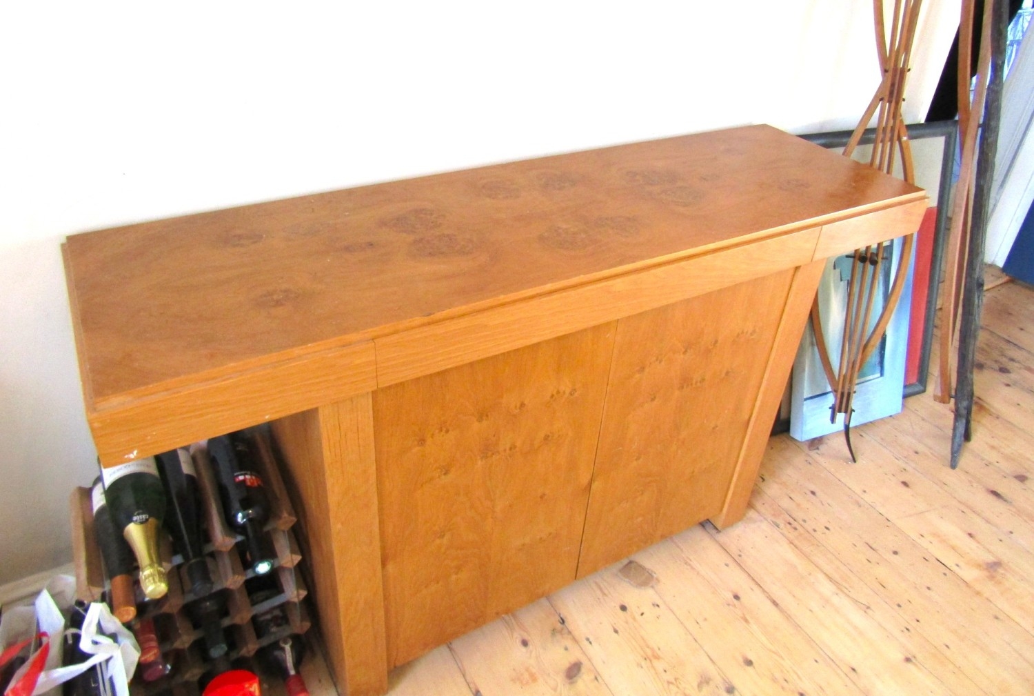 Modernist Restrained Form Console Table of Good Manufacture with Two-Door Cupboard Below Original Condition Top Approximately 50 Inches Wide