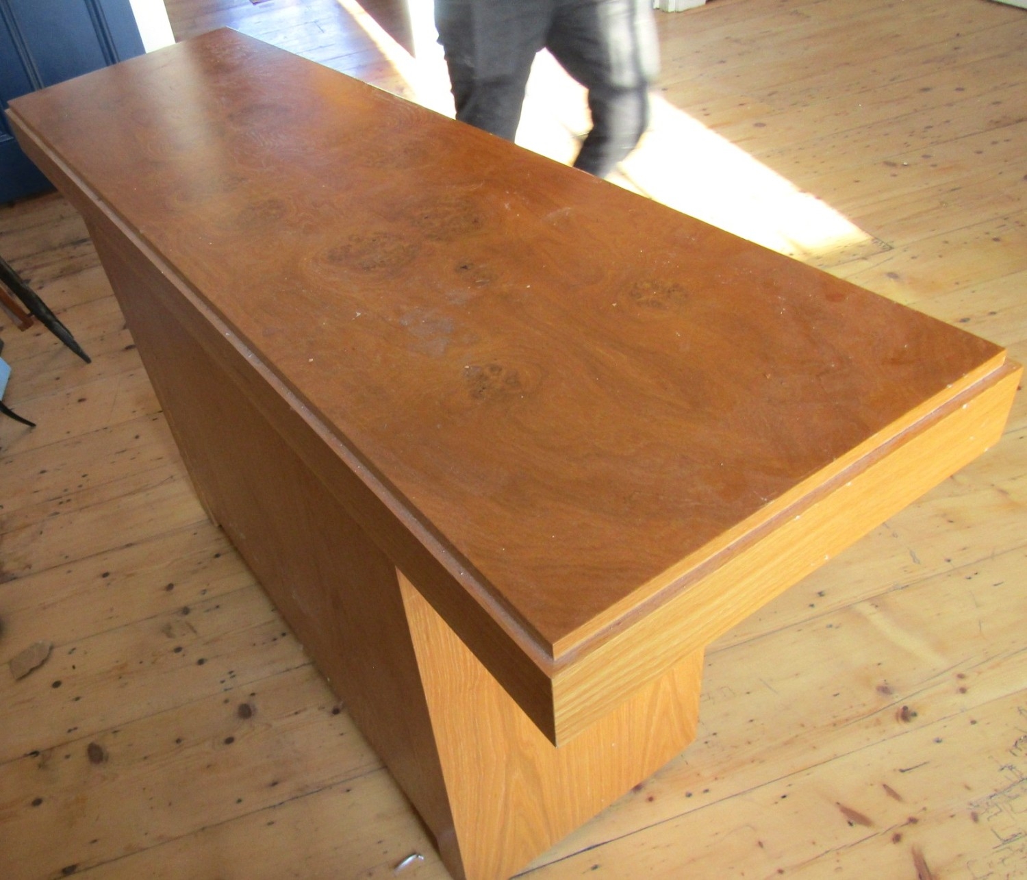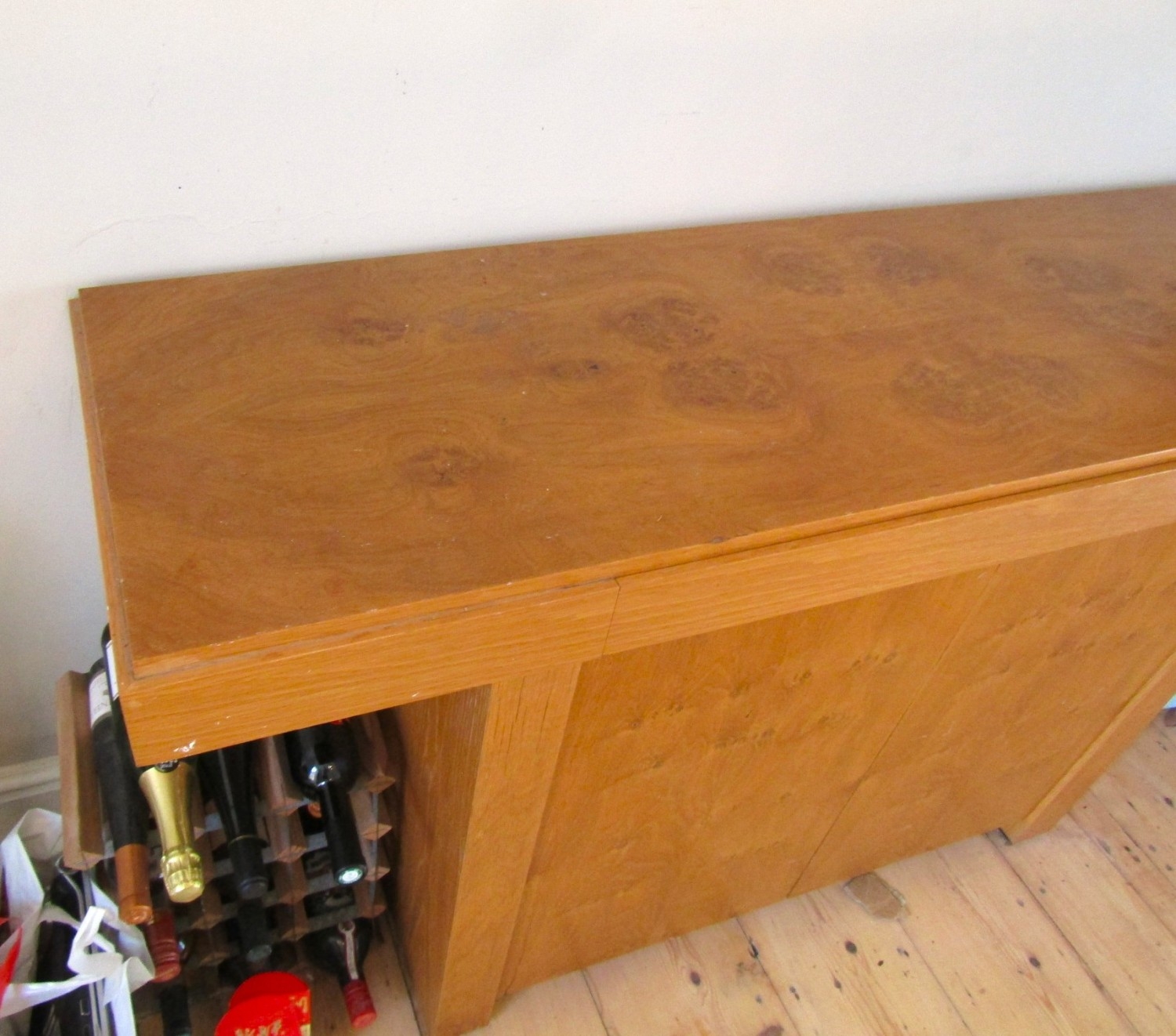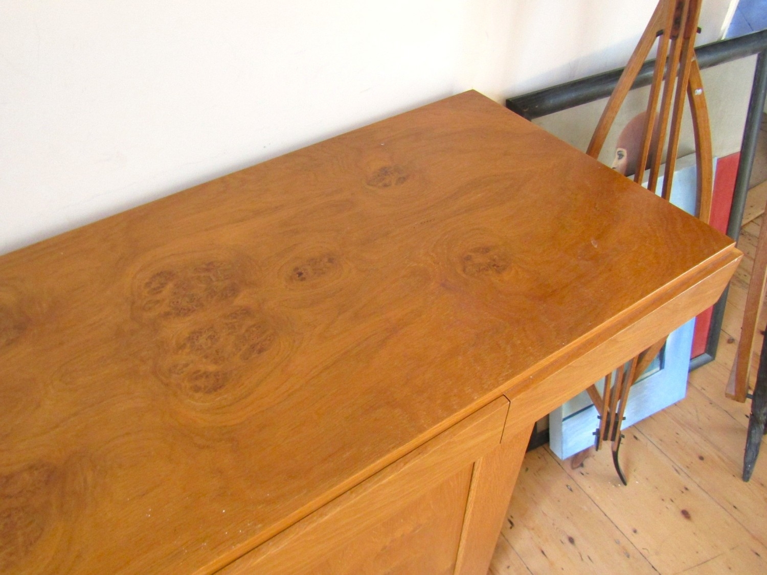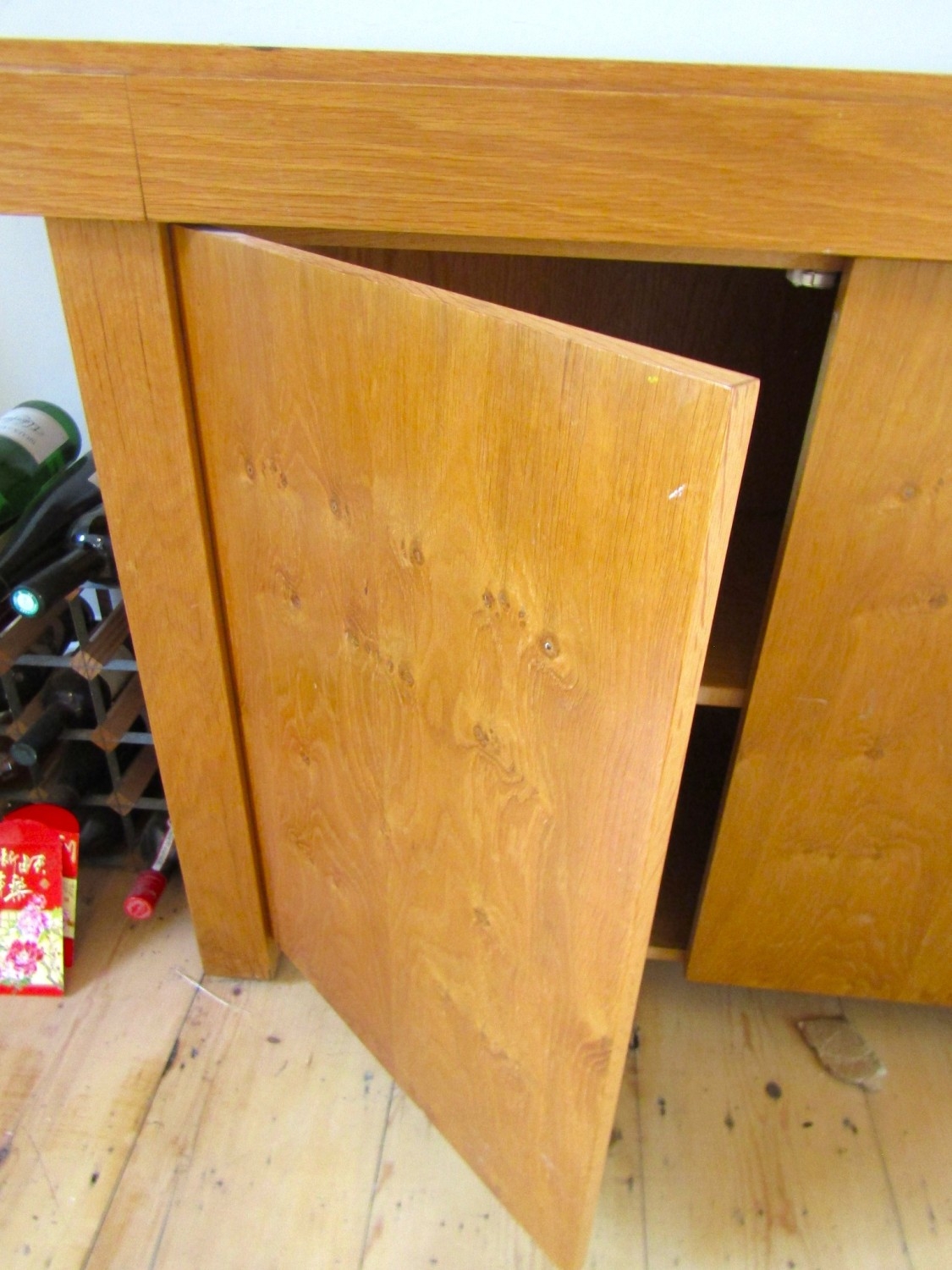 Modernist Restrained Form Console Table of Good Manufacture with Two-Door Cupboard Below Original Condition Top Approximately 50 Inches Wide