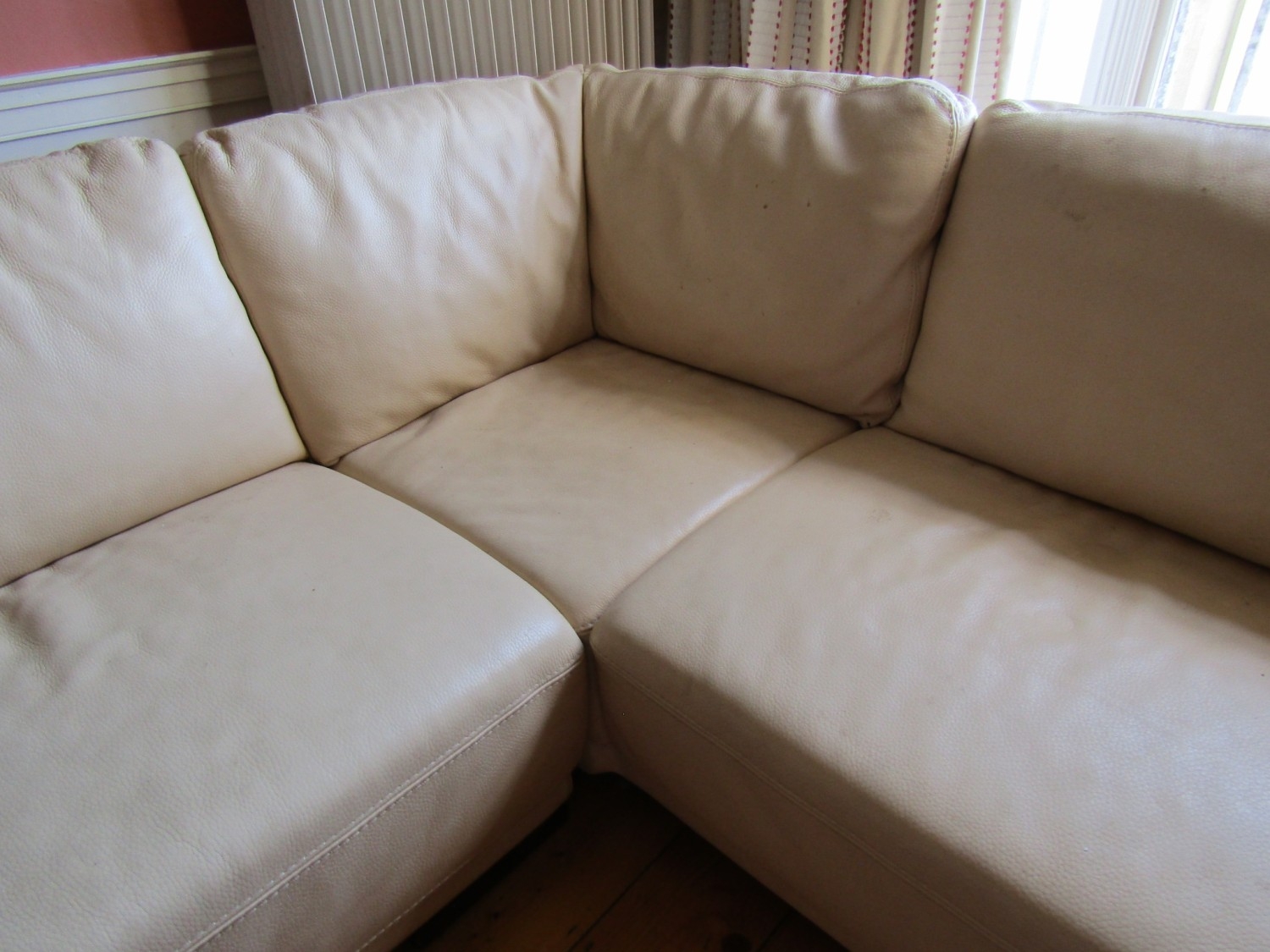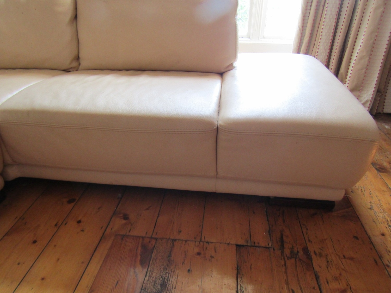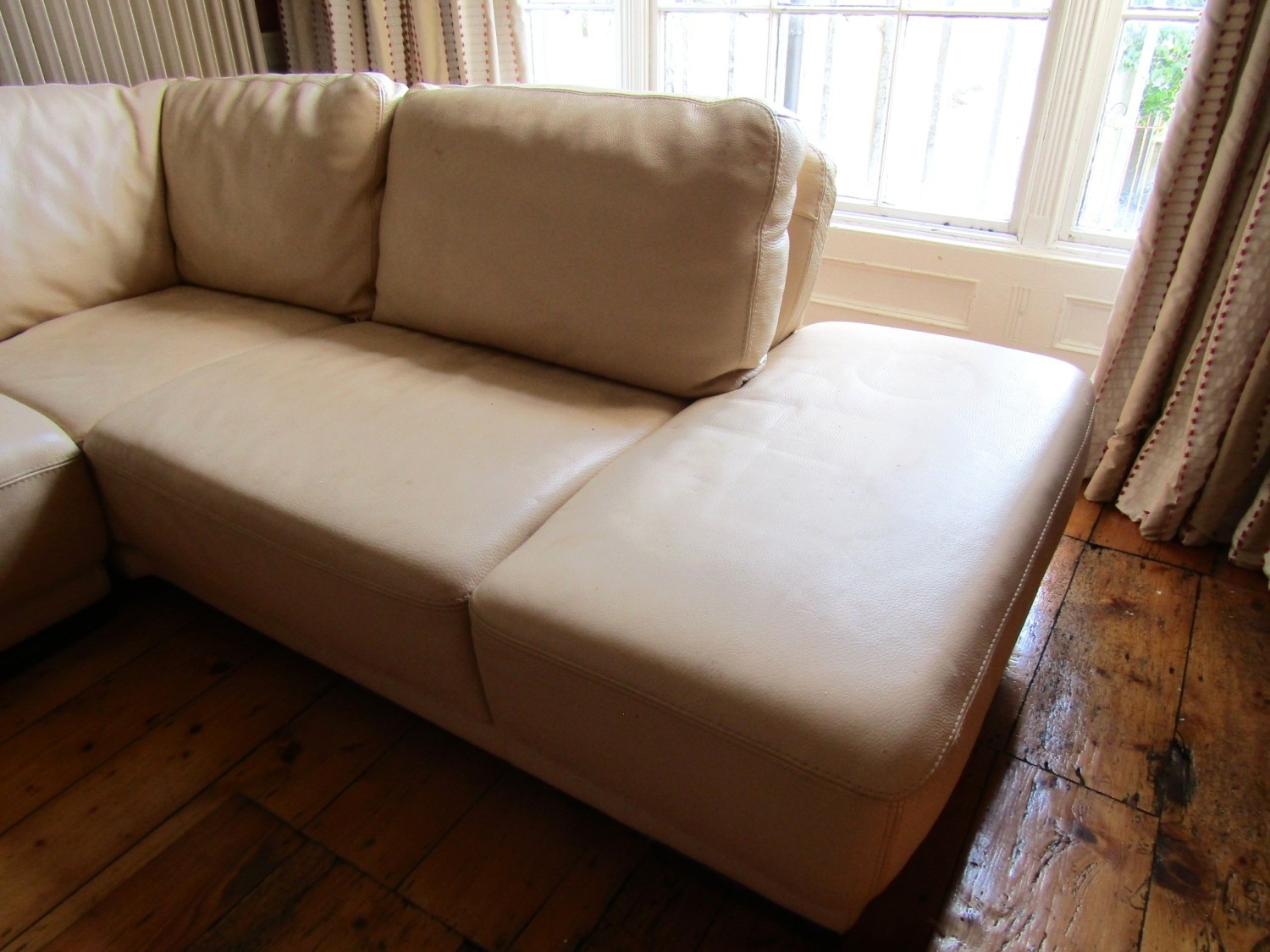 Modern Designer Cream Leather Upholstered L Form Settee High Quality Approximately 8ft x 6ft