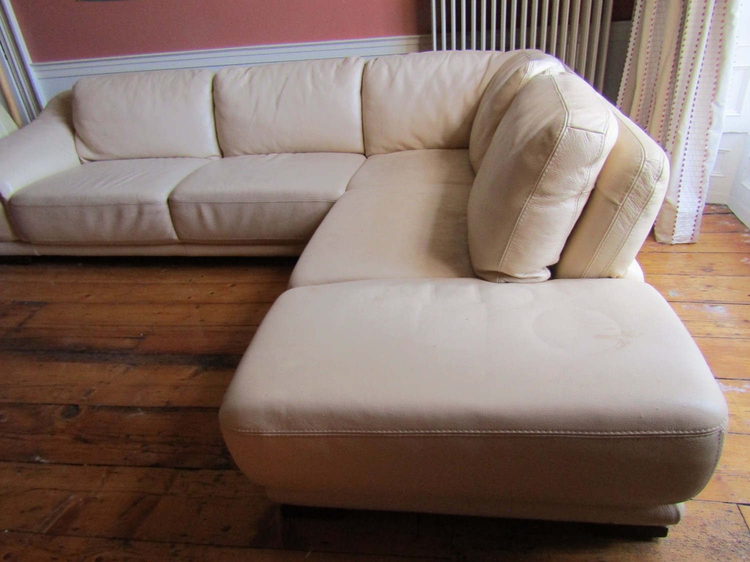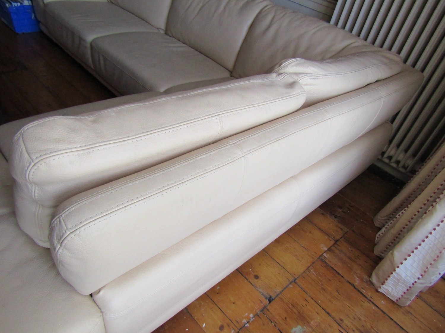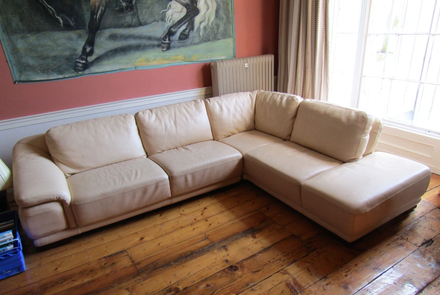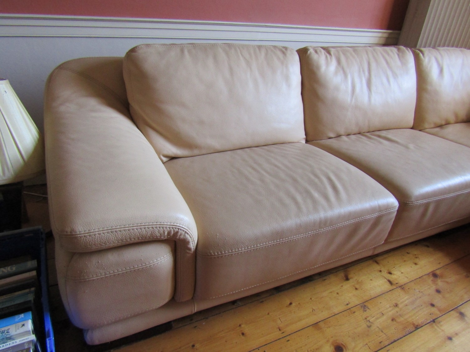 Modern Designer Cream Leather Upholstered L Form Settee High Quality Approximately 8ft x 6ft