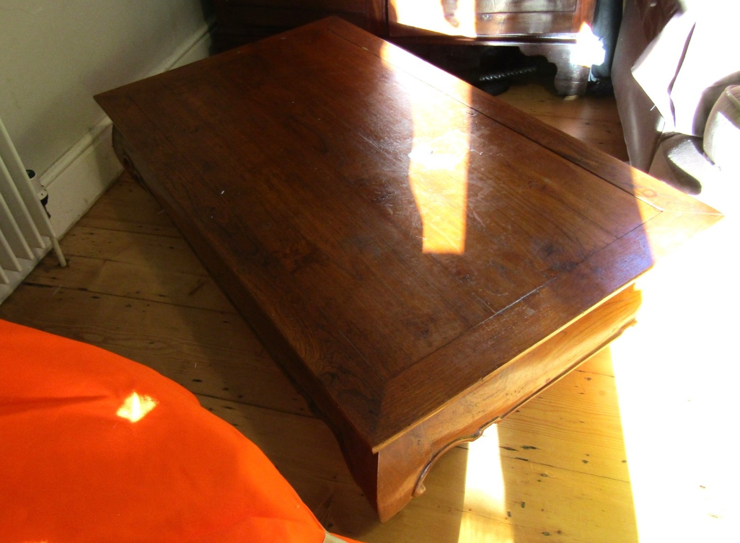 Eastern Hardwood Rectangular Form Carved Coffee or Low Table Approximately 4ft Long x 25 Inches Wide above Shaped Supports